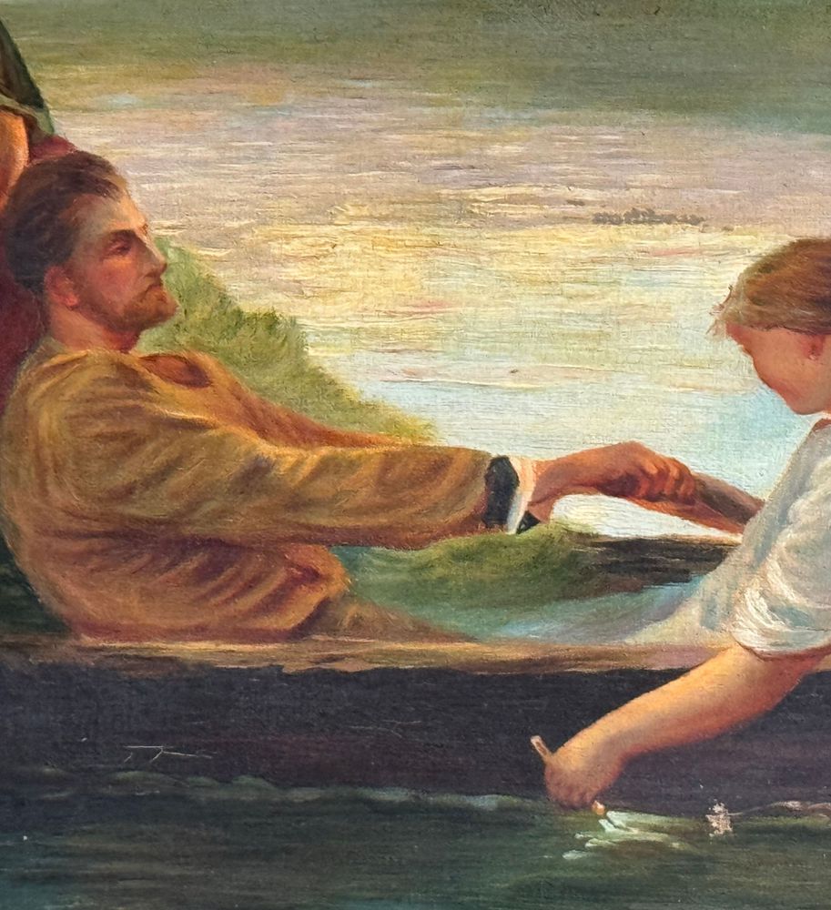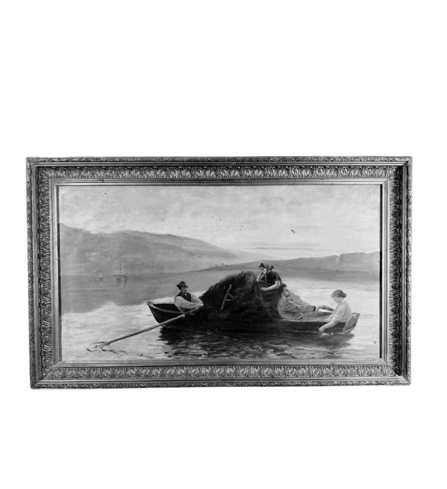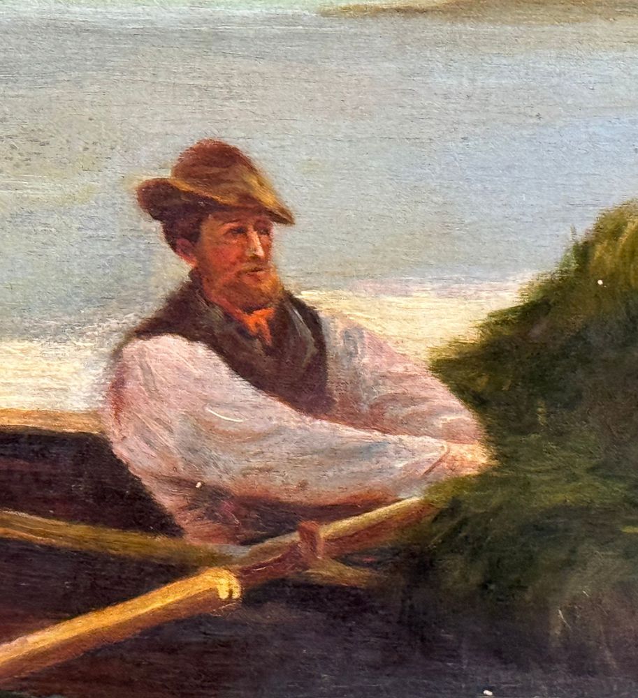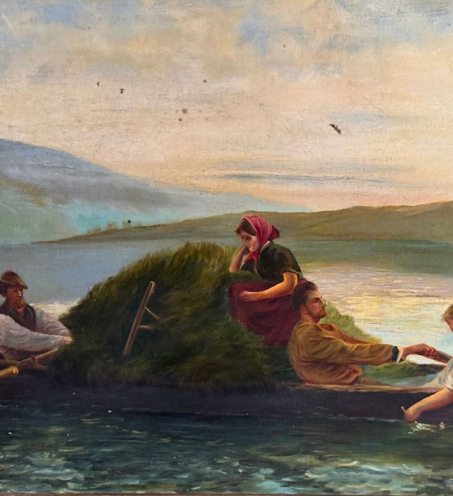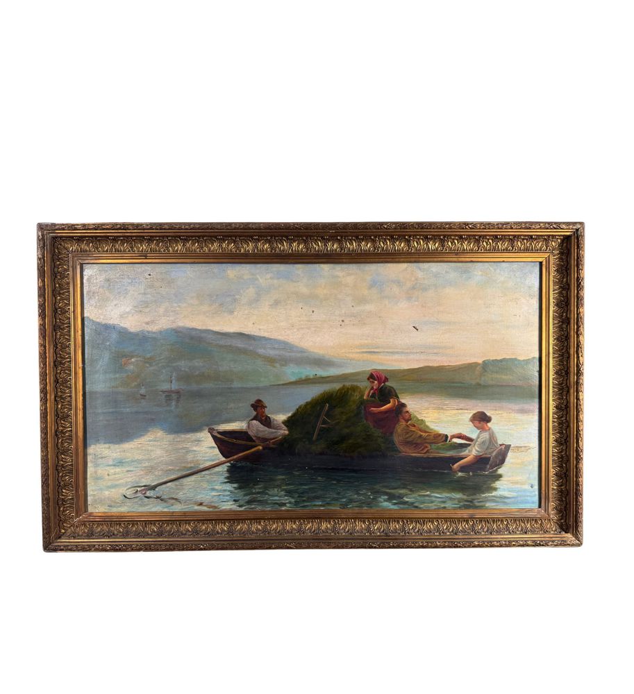 Dipinto olio su tela, periodo XIX secolo scuola Italiana, raffigurante Contadini in laguna. Dimensioni compreso cornice: 56x93 cm. Dimensioni interno cornice: 45x82 cm. Da artista anonimo. Opera in buone condizioni.