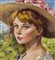 Dipinto olio su tela applicata su pannello, periodo XX secolo scuola italiana, raffigurante Ritratto di donna con cappello. Dimensioni compreso cornice: 36x46 cm. Dimensioni interno cornice: 27x37 cm. Da artista anonimo. Opera in buone condizioni.
