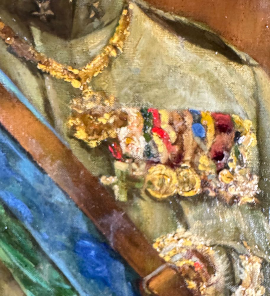 Dipinto olio su tela, periodo XX secolo scuola Italiana, raffigurante Ritratto di Vittorio Emanuele III. Dimensioni compreso cornice: 94x134 cm. Dimensioni interno cornice: 71x108 cm. Da artista anonimo. Opera in buone condizioni e di ottima qualità artistica.