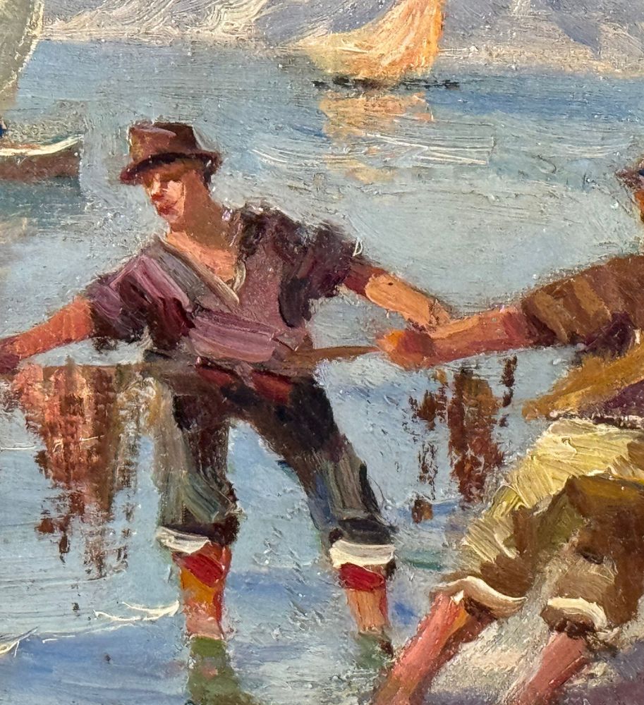 Dipinto olio su tela, periodo XX secolo scuola Italiana, raffigurante Il tiro dei pescatori a Napoli. Dimensioni compreso cornice: 67x59 cm. Dimensioni interno cornice: 50x40 cm. Reca firma in basso a sinistra da Fausto Pratella. Opera in buone condizioni, con lievi segni di vissuto come da foto allegate.