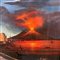 Dipinto guazzo (tempera su cartoncino), periodo inizio XX secolo scuola Italiana, raffigurante Eruzione del Vesuvio vista da Santa Lucia.