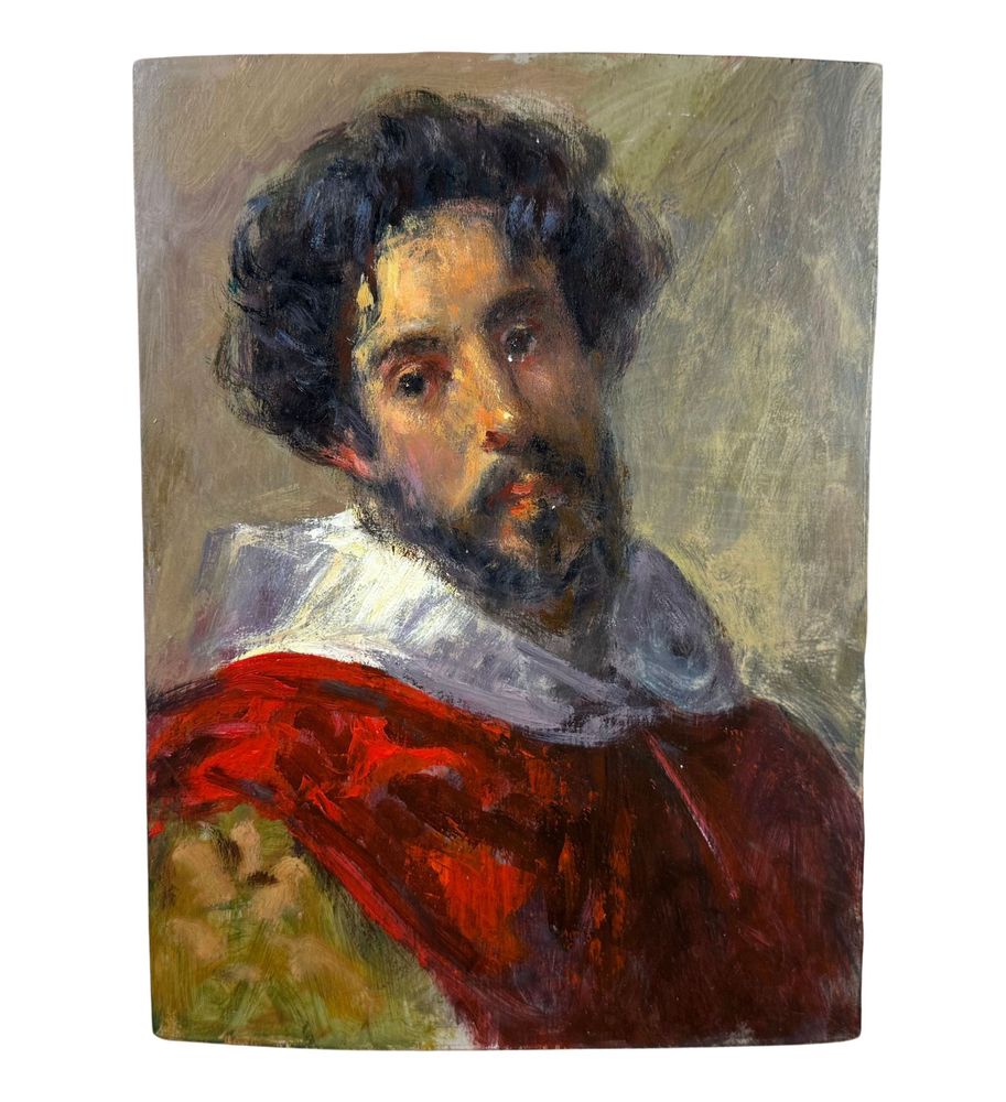 Bozzetto artistico olio su tavola, periodo XX secolo scuola Italiana, raffigurante Ritratto di uomo. Dimensioni: 25x19 cm. Da artista anonimo. Opera in buone condizioni.