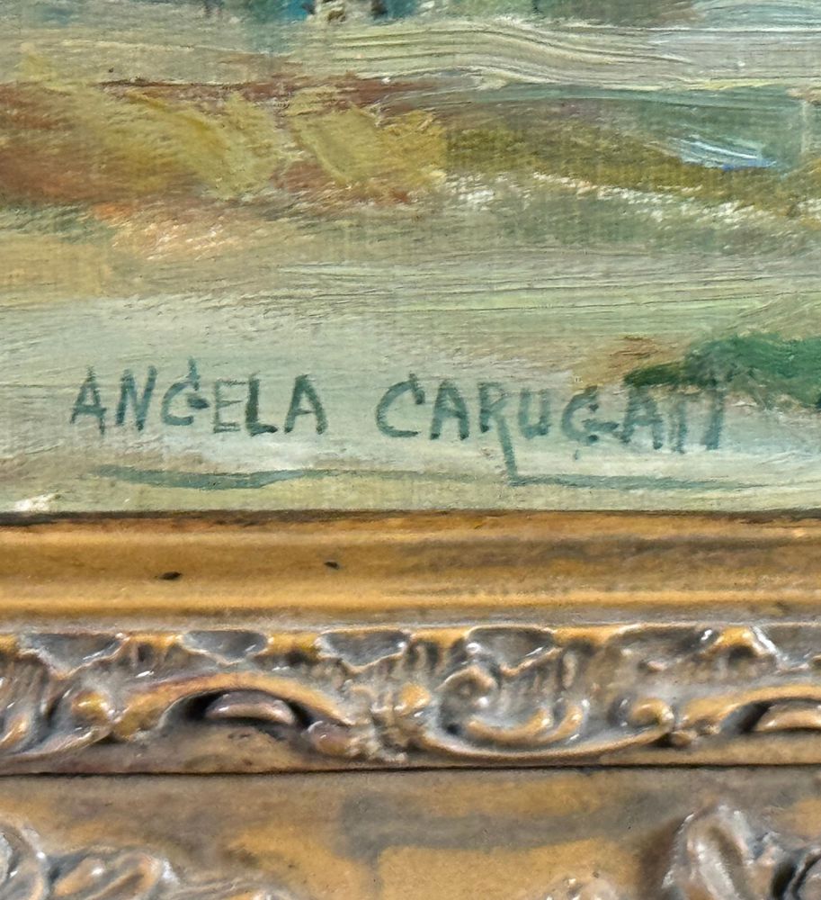 Dipinto olio su pannello, periodo XX secolo scuola Italiana, raffigurante Paesaggio con casetta. Dimensioni compreso cornice: 55x46 cm. Dimensioni interno cornice: 41x31,5 cm. Reca firma in basso a destra da Angela Carugati (1881 - 1977). Opera in buone condizioni.