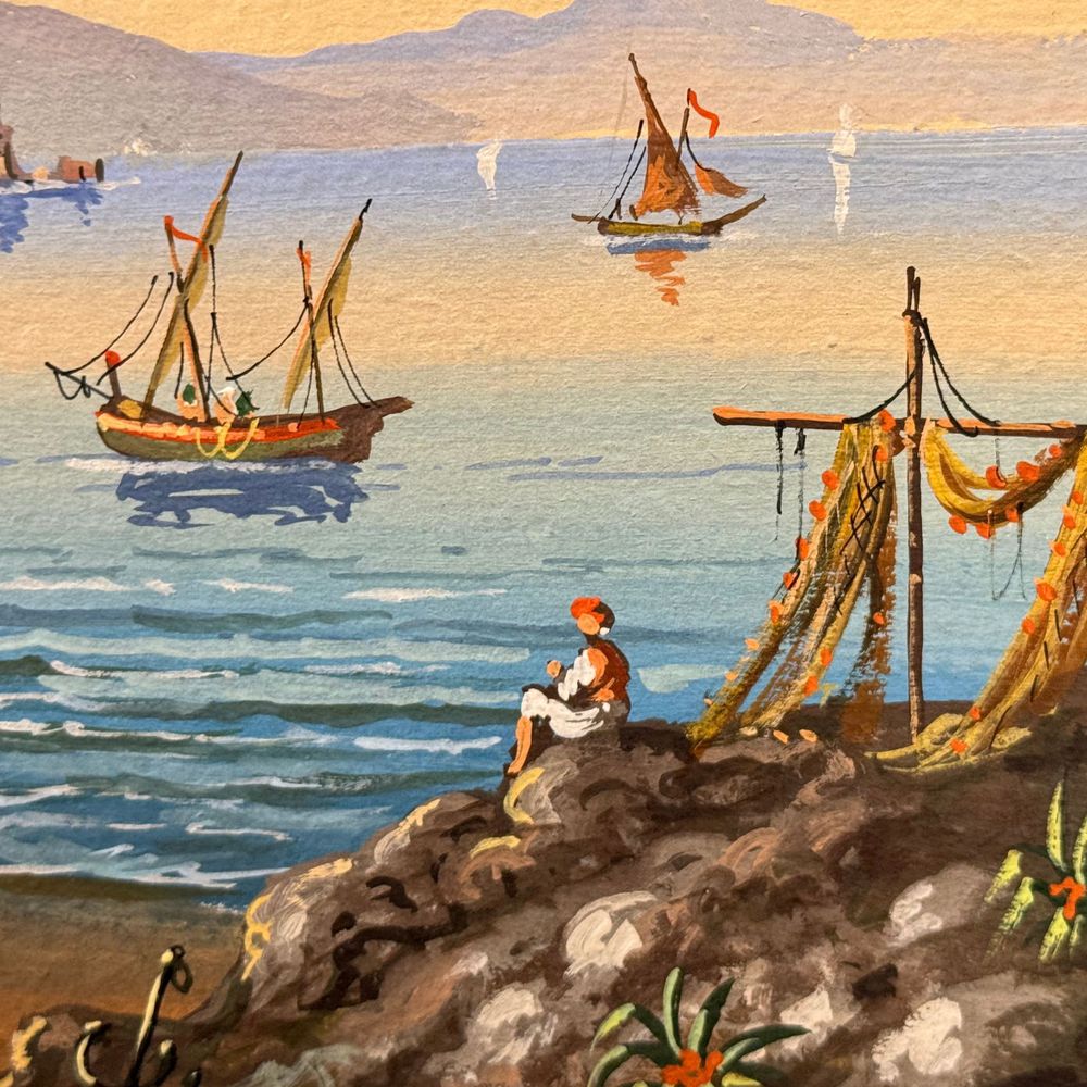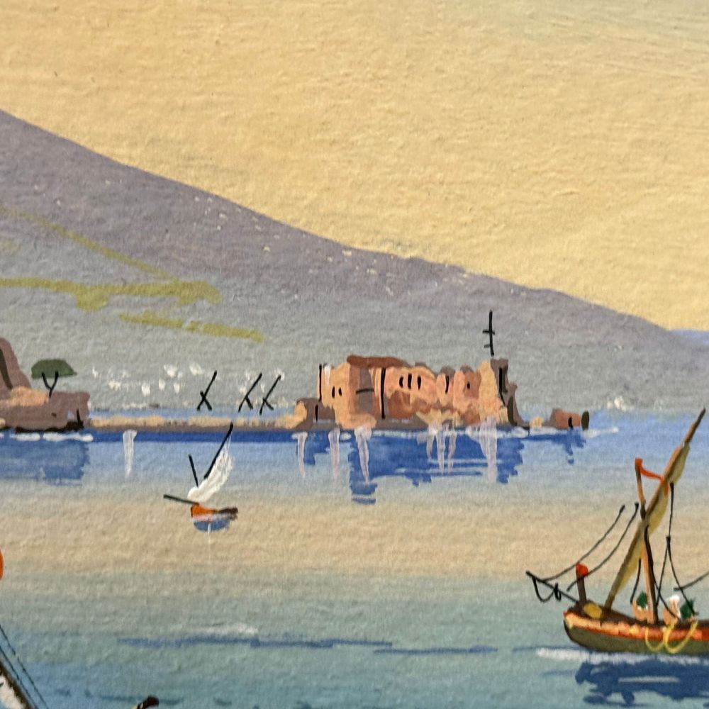 Dipinto guazzo (tempera su carta), periodo XX secolo scuola Italiana, raffigurante Napoli da Mergellina. Dimensioni: 49x28 cm. Da artista anonimo. Opera in buone condizioni con lievi segni di vissuto come da foto allegate.