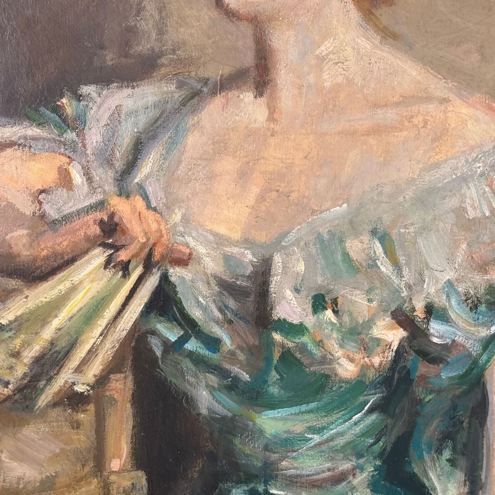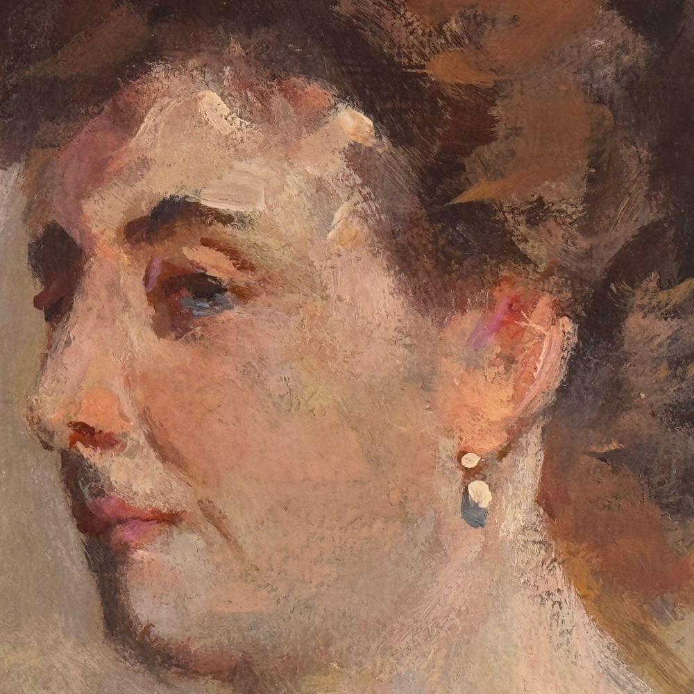 Dipinto olio su tela, periodo XX 1953 secolo scuola Spagnola, raffigurante Ritratto di donna nella maniera impressionista. Dimensioni interno cornice: 50x70 cm. Dimensioni compreso cornice: 54x74 cm. Reca firma in basso a sinistra da artista non identificato. Opera in buone condizioni.