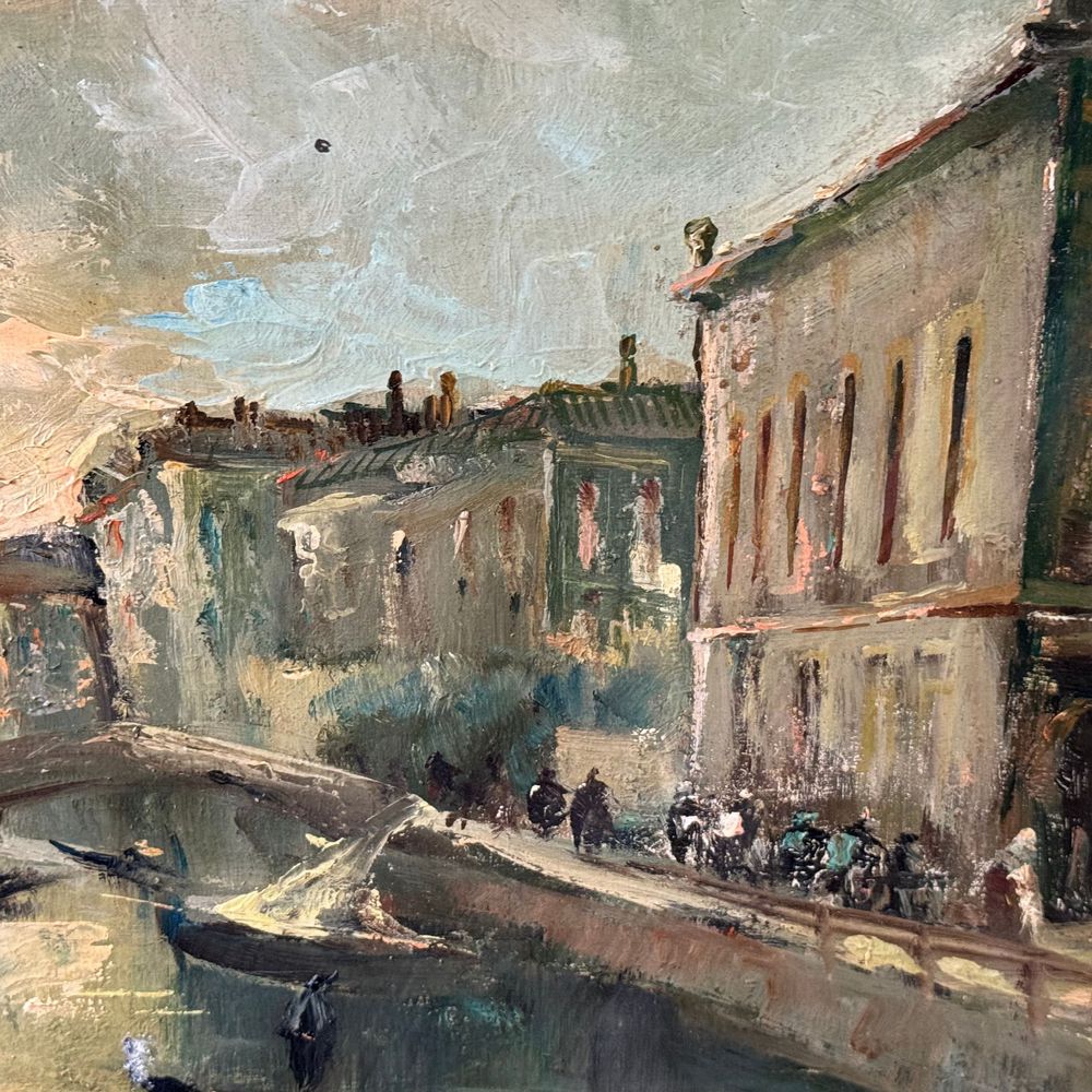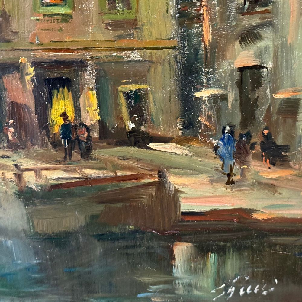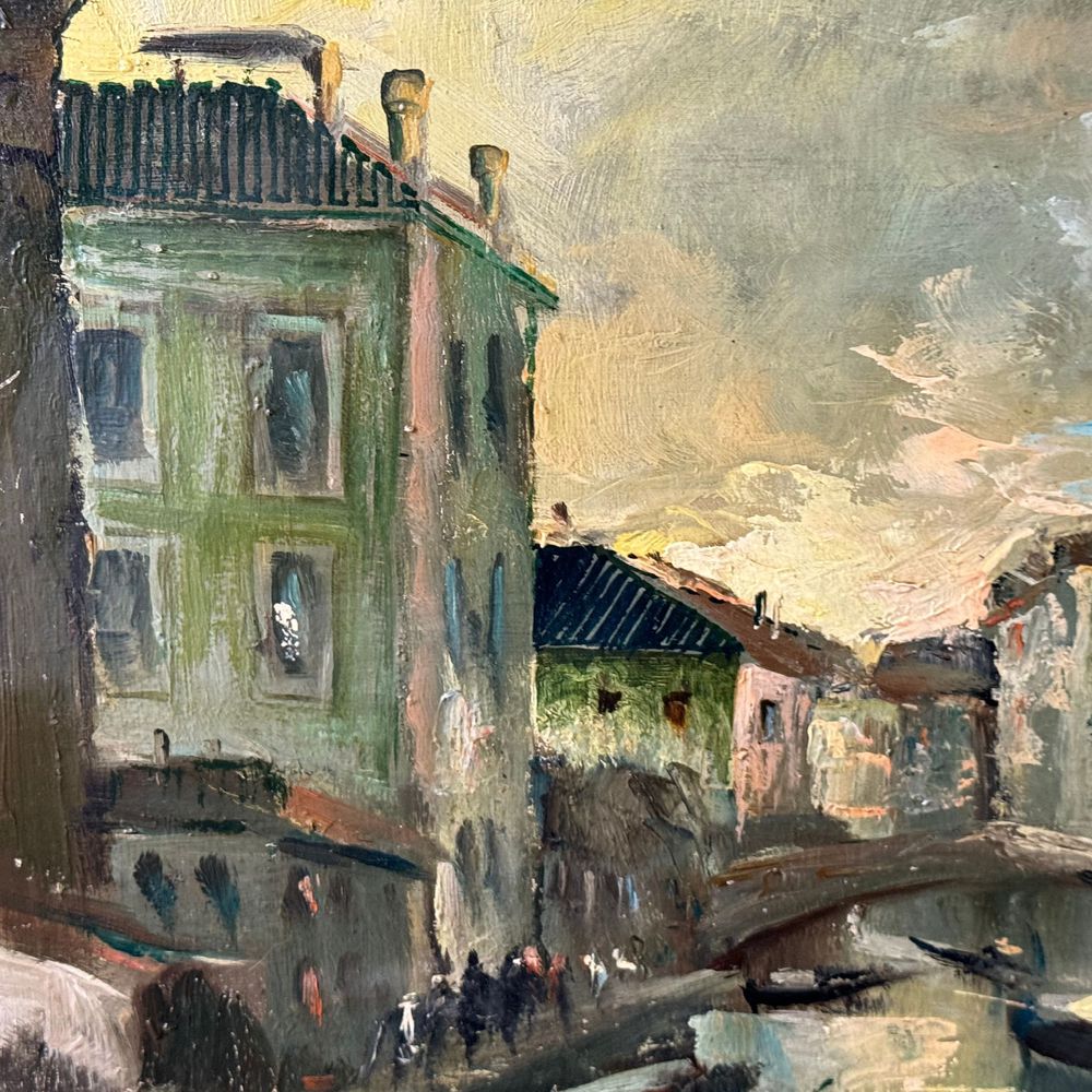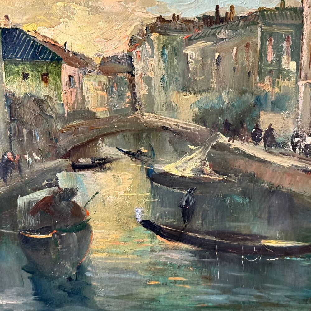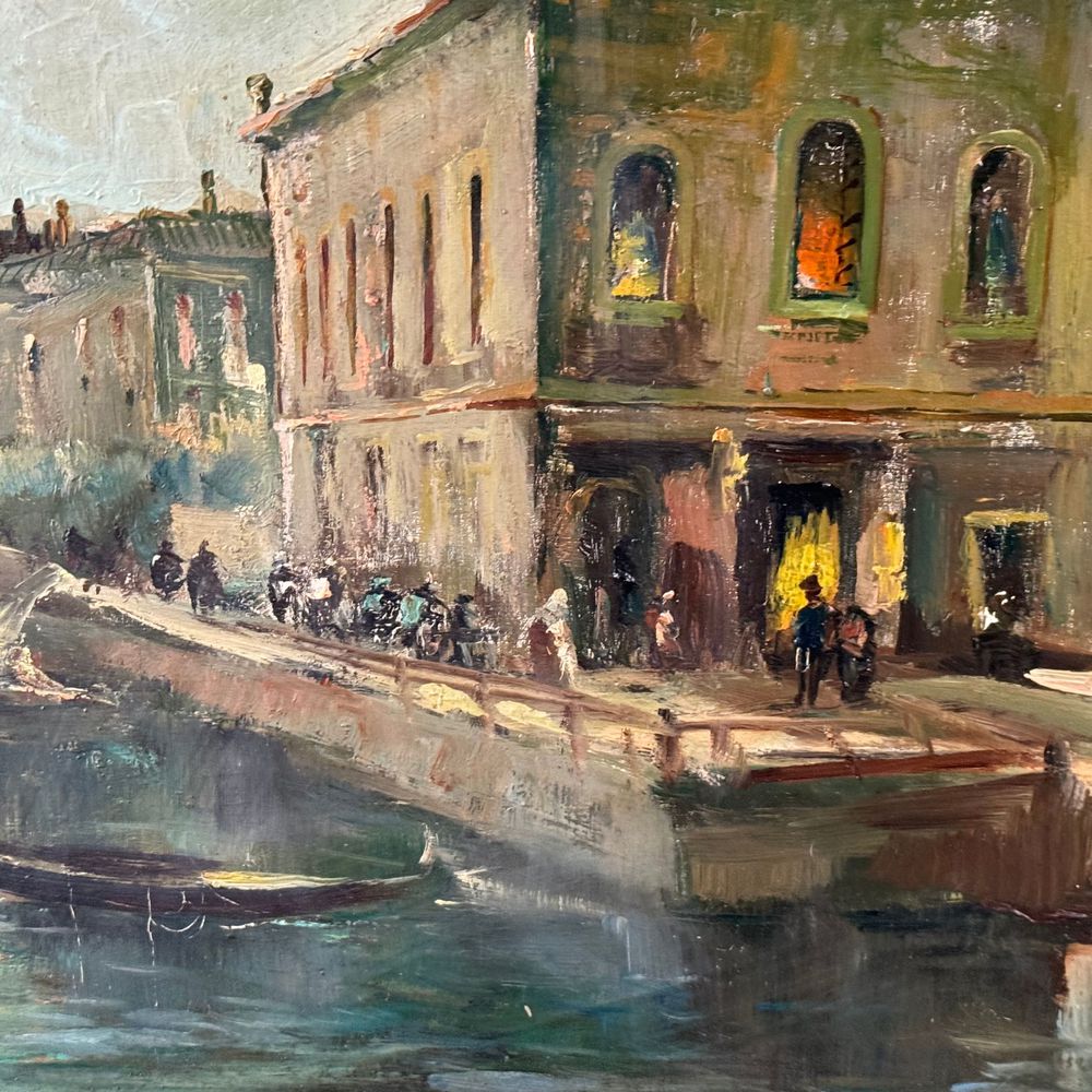 Dipinto olio su tela, periodo XX secolo (1910 - 1920) scuola Italiana, raffigurante Venezia. Dimensioni interno cornice: 94x66 cm. Dimensioni compreso cornice: 103x73 cm. Firmato in basso a destra da artista non identificato. Opera in buone condizioni.