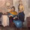 Dipinto olio su tela, periodo XX secolo scuola Italiana, raffigurante Due donne in un interno. Dimensioni: 52,5x45.5 cm. Da artista anonimo. Opera in buone condizioni.