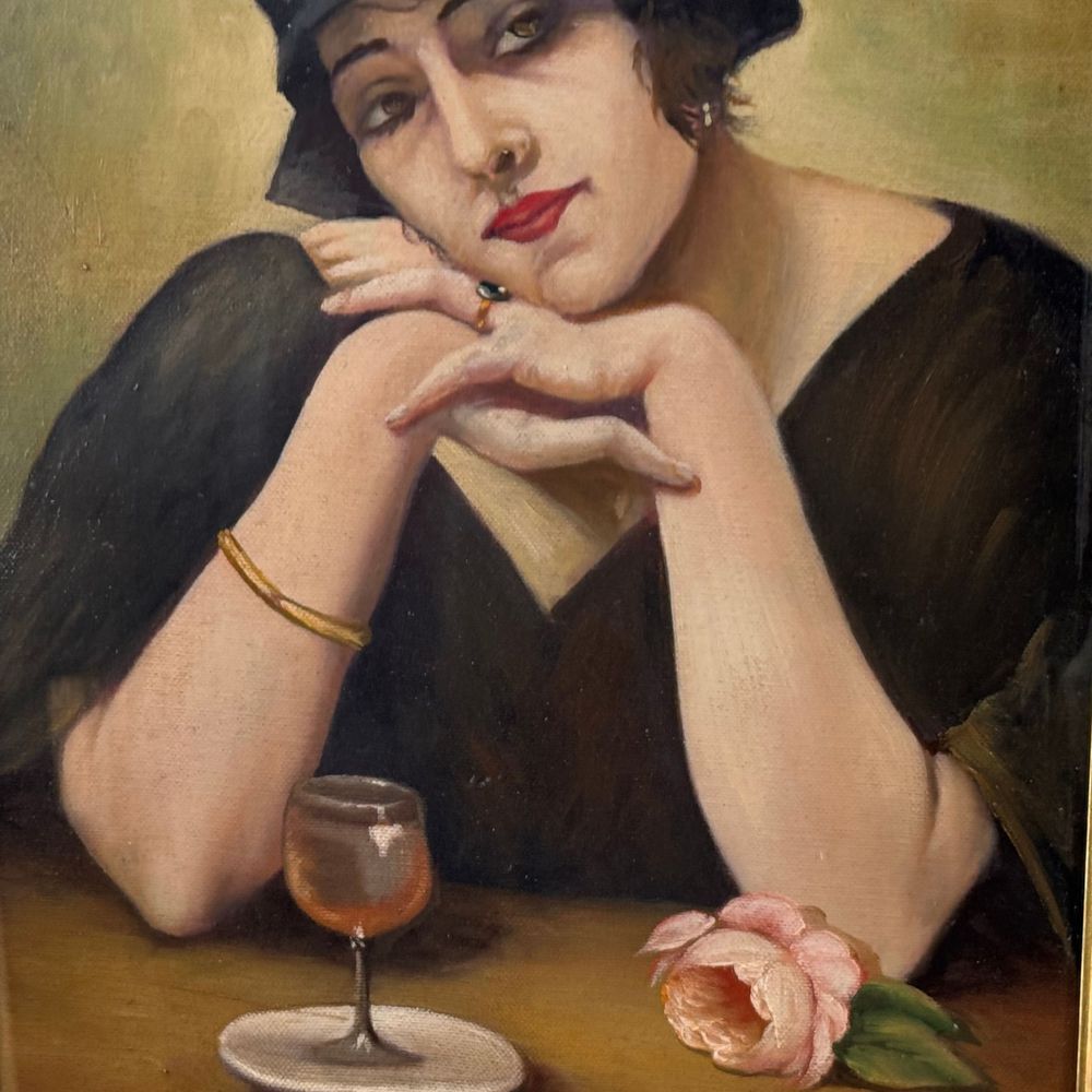 Dipinto olio su tela, periodo XX secolo scuola Italiana, raffigurante Ritratto di donna. Dimensioni interno cornice: 30x40 cm. Dimensioni compreso cornice: 33x43 cm. Reca firma in basso a destra di difficile lettura. Opera in buone condizioni.