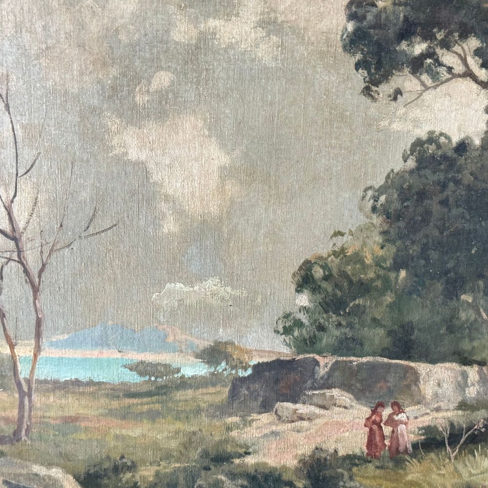 Dipinto olio su tela, periodo XX secolo scuola Napoletana, raffigurante Paesaggio. Dimensioni interno cornice: 70x50 cm. Diemnsioni compreso cornice: 86x66 cm. Da artista anonimo di scuola napoletana. Opera in buone condizioni con lievi segni di vissuto come da foto allegate.