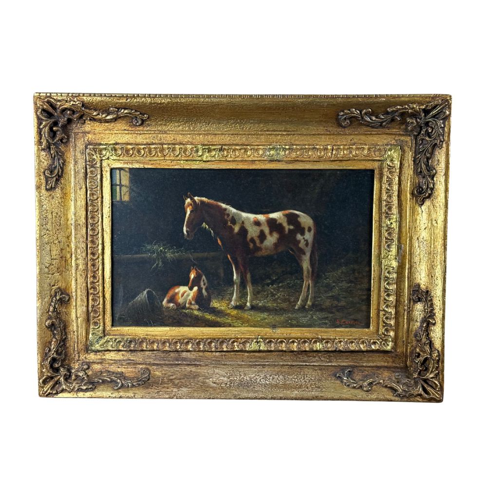 Dipinto olio su tavola, periodo XX secolo scuola italiana, raffigurante Cavalli. Dimensioni interno cornice: 40x26 cm. Dimensioni compreso cornice: 59x44 cm. Reca firma in basso a destra da Eduardo Cerrone (1935 - 2010). Opera in buone condizioni.