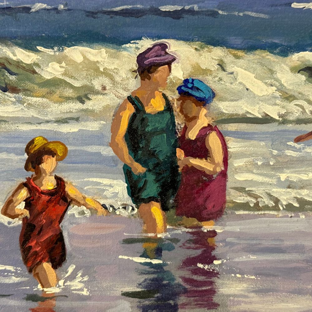 Dipinto olio su pannello, periodo XX secolo scuola Italiana, raffigurante Giochi di bambini su mare. Dimensioni: 35x50 cm. Reca firma in basso a destra di difficile lettura. Opera in buone condizioni.