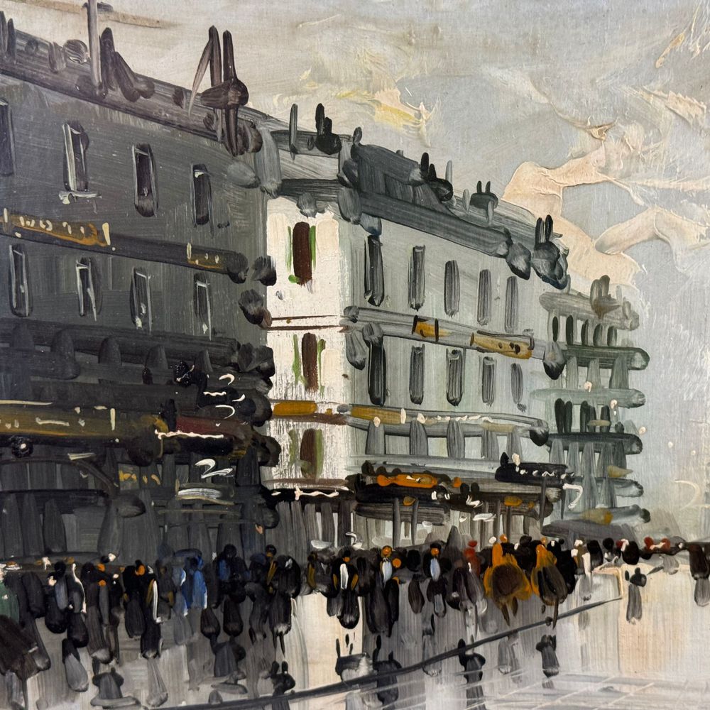 Dipinto olio su tela, periodo XX secolo scuola Italiana, raffigurante Strada con personaggi. Dimensioni interno cornice: 40x30 cm. Dimensioni compreso cornice: 48x38 cm. Reca firma in basso a destra da artista non identificato. Opera in buone condizioni.