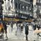 Dipinto olio su tela, periodo XX secolo scuola Italiana, raffigurante Strada con personaggi. Dimensioni interno cornice: 30x40 cm. Dimensioni compreso cornice: 48x38 cm. Reca firma in basso a destra da artista non identificato. Opera in buone condizioni.