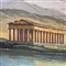 Dipinto guazzo (tempera su carta), periodo inizio XX secolo scuola italiana, raffigurante I templi di Paestum. Dimensioni interno cornice: 55x42 cm. Dimensioni compreso cornice: 68x55 cm. Reca firma in basso a destra da artista non identificato. Opera in buone condizioni con lievi segni di vissuto come da foto allegate.