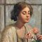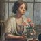 Dipinto olio su tela, periodo prima metà del XX secolo scuola italiana, raffigurante Donna con fiori. Dimensioni interno cornice: 48x60 cm. Dimensioni compreso cornice: 61x74 cm. Da artista anonimo. Opera in buone condizioni. Cornice da restaurare, da segnalere un recente rintelo e sostituzione del telaio.