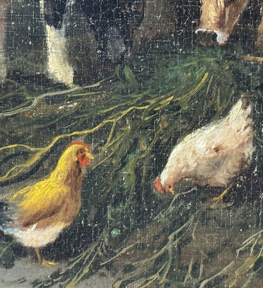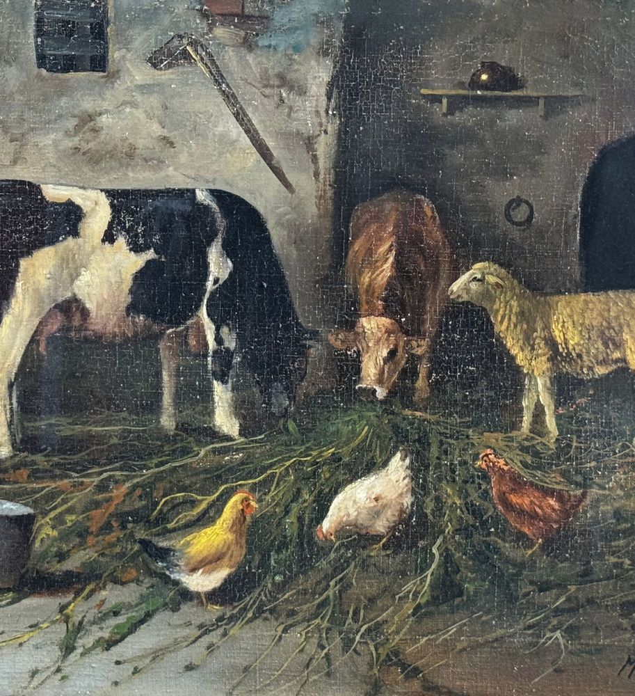 Dipinto olio su tela, periodo seconda metà del XX secolo scuola Italiana, raffigurante Interno di stalla. Dimensioni compreso cornice: 69x58 cm. Dimensioni interno cornice: 45x35 cm. Reca firma in basso a destra da Mario Allegretti. Opera in buone condizioni con lievi segni di vissuto me da foto allegate.