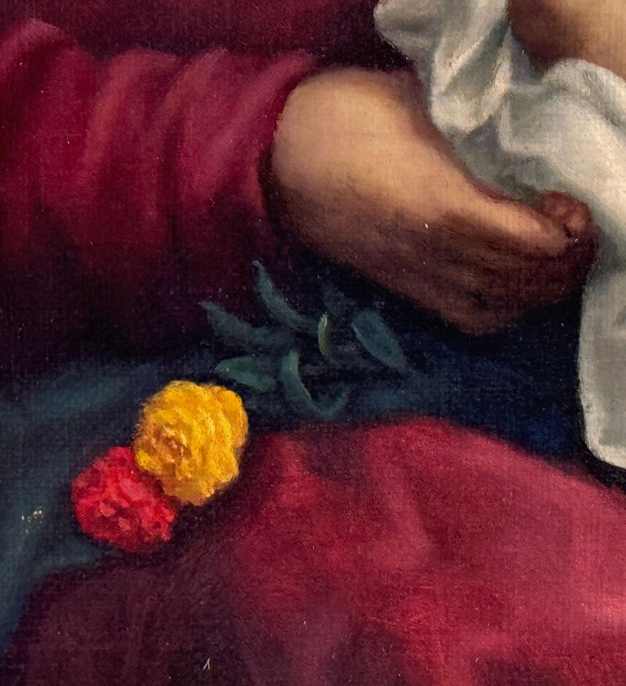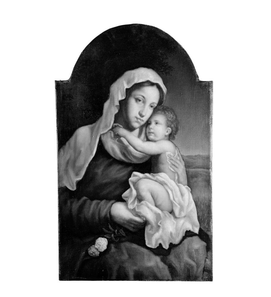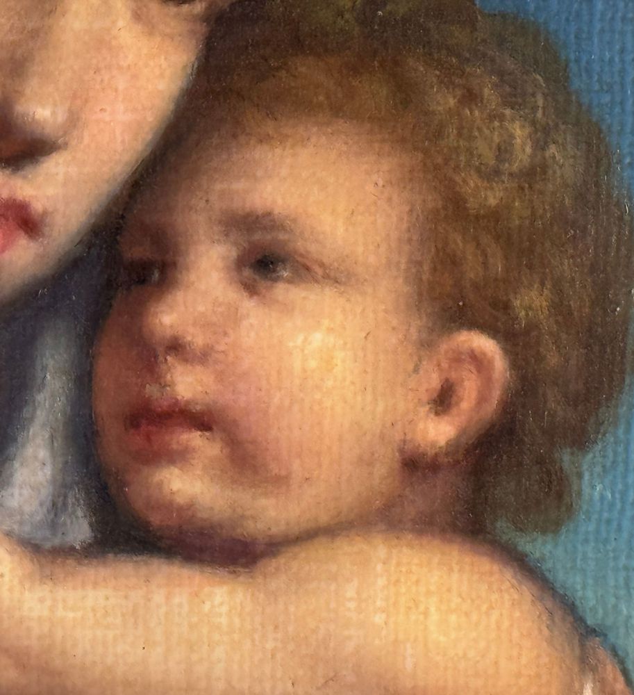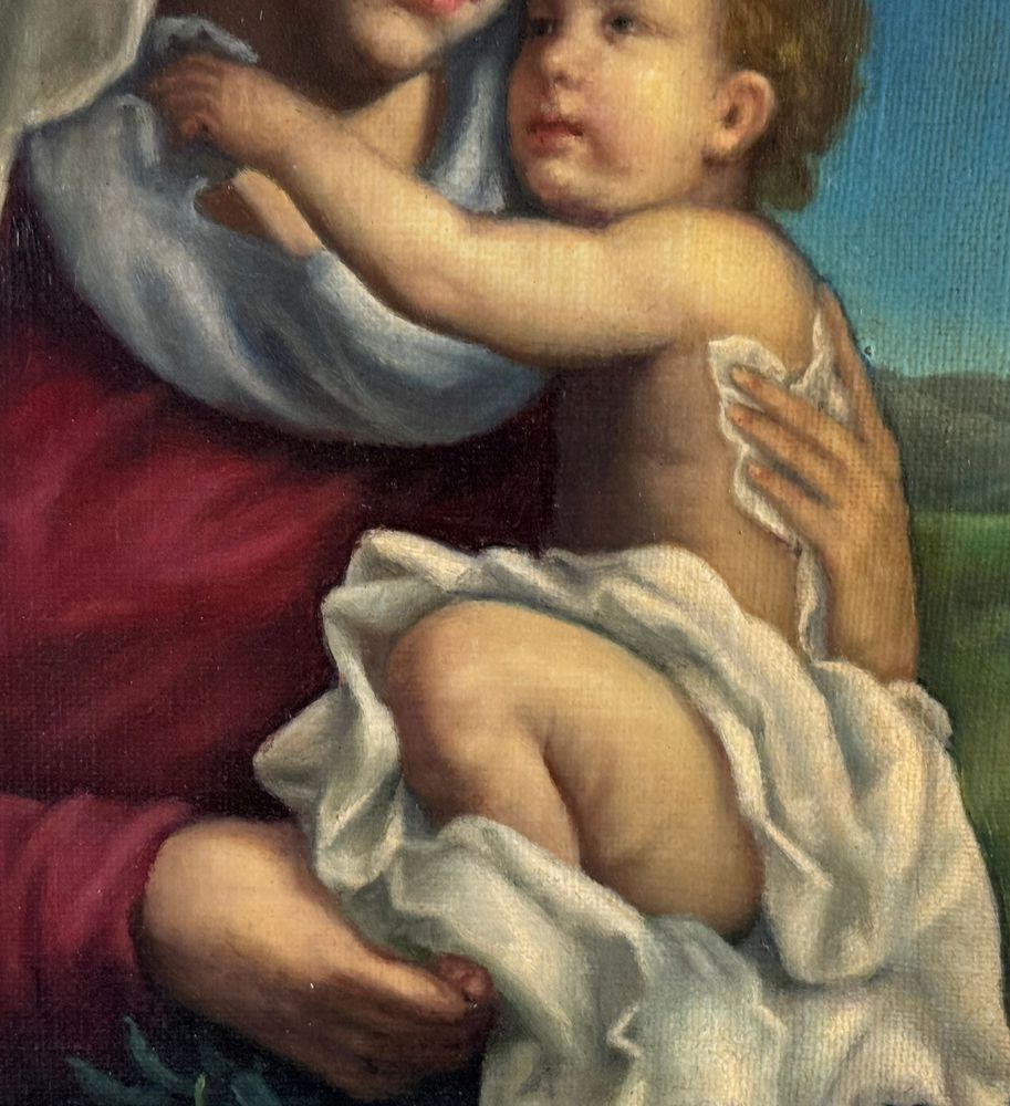 Dipinto olio su tela, periodo XIX secolo scuola Italiana, raffigurante Vergine e Bambino. Dimensioni: 43x71 cm. Da artista anonimo. Opera in buone condizioni. (Trasporto da boiserie su telaio). Proveniente da illustre famiglia Italiana. Il dipinto non presenta vecchi restauri.