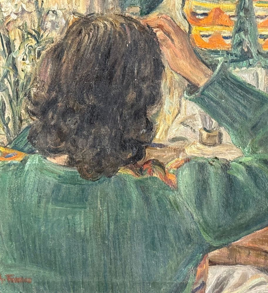 Dipinto olio su tela, periodo XX secolo scuola Italiana, raffigurante Donna allo specchio. Dimensioni compreso cornice: 70x50 cm. Dimensioni interno cornice: 43x55 cm. Reca firma in basso a sinistra da artista non identificato. Opera in buone condizioni.