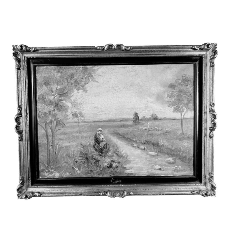 Dipinto olio su tela, periodo inizio XX secolo scuola Italiana, raffigurante Paesaggio di campagna con personaggio. Dimensioni compreso cornice: 86x67 cm. Dimensioni interno cornice: 70x50 cm. Da artista anonimo. Opera in buone condizioni con lievi segni di vissuto come da foto allegate.