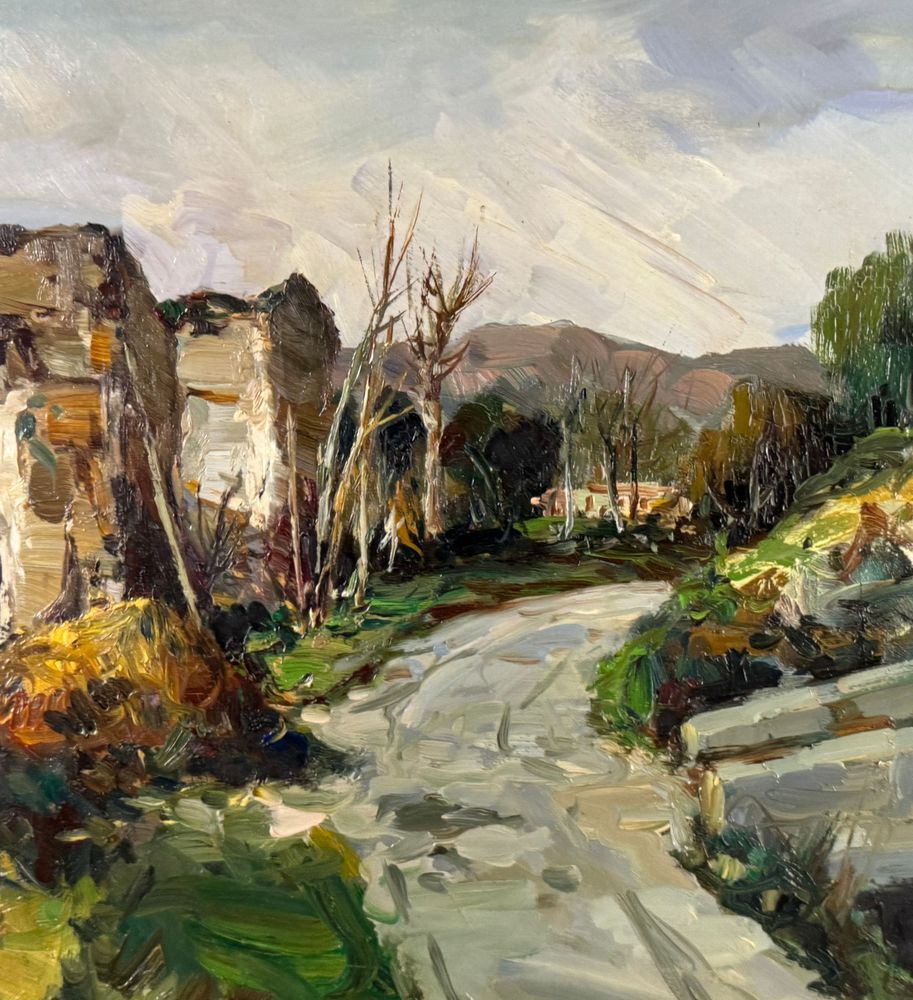 Dipinto olio su tela, periodo XX secolo scuola Italiana, raffigurante Strada di campagna. Dimensioni compreso cornice: 89x79 cm. Dimensioni interno cornice: 60x50 cm. Reca firma in basso a destra att. a Luigi Crisconio. Opera in buone condizioni e di eccellente qualità artistica.