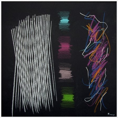 ENNIO FINZI Venezia 1931 Paesaggio Pastelli policromi su cartoncino 35x35. Firma in b. a d. Autentica dell’autore su foto.