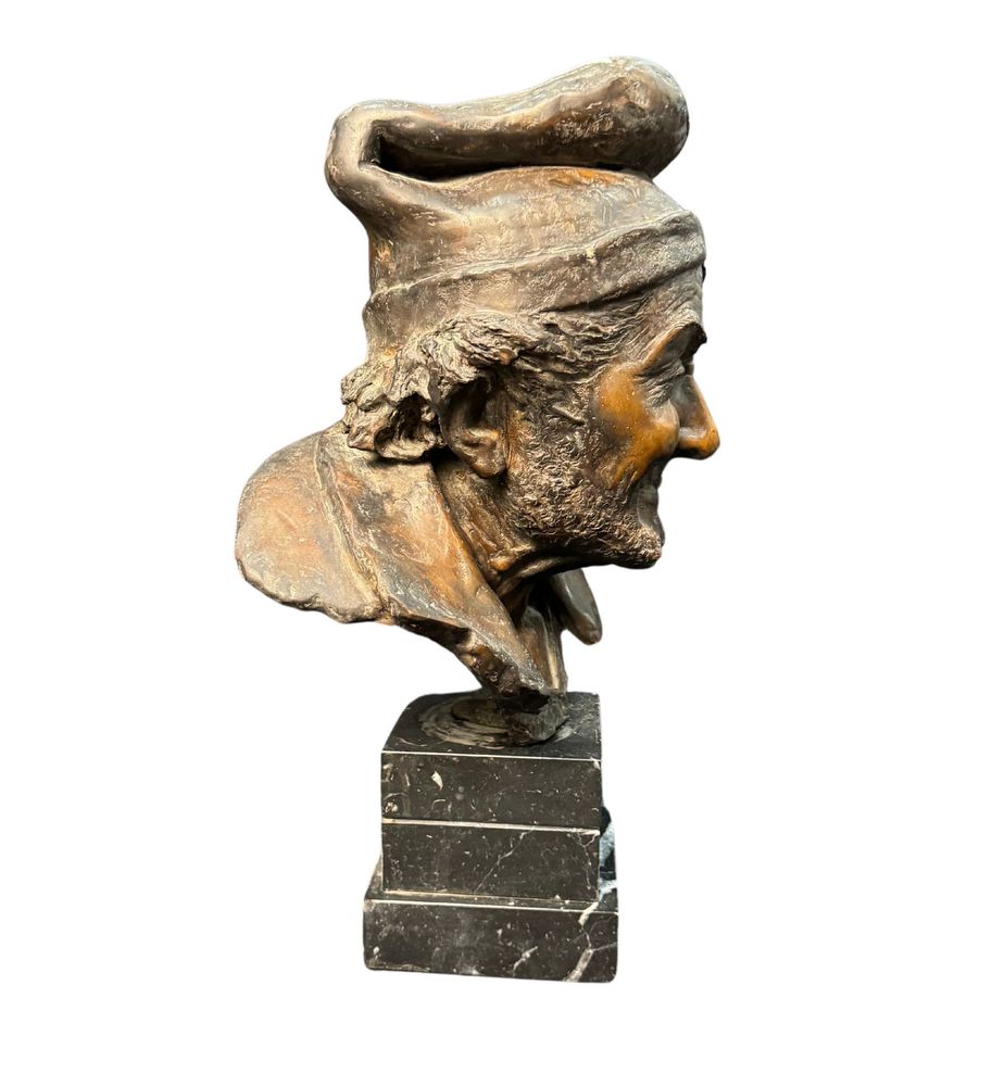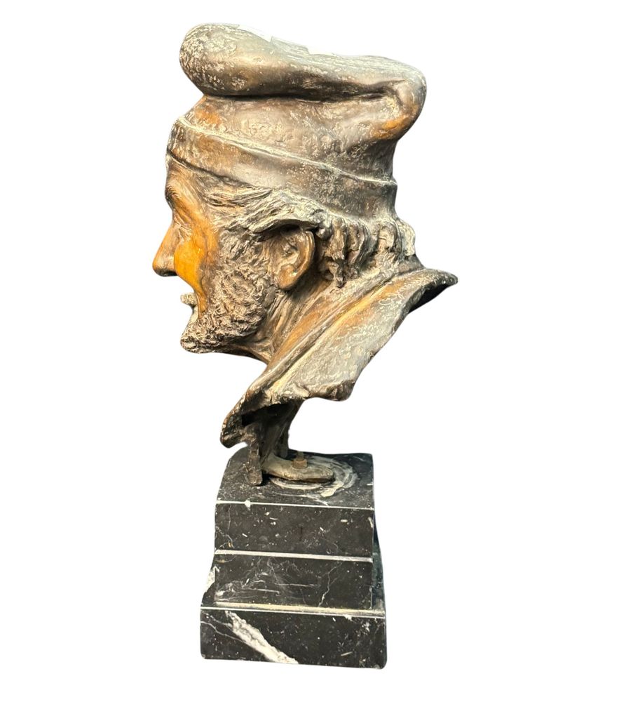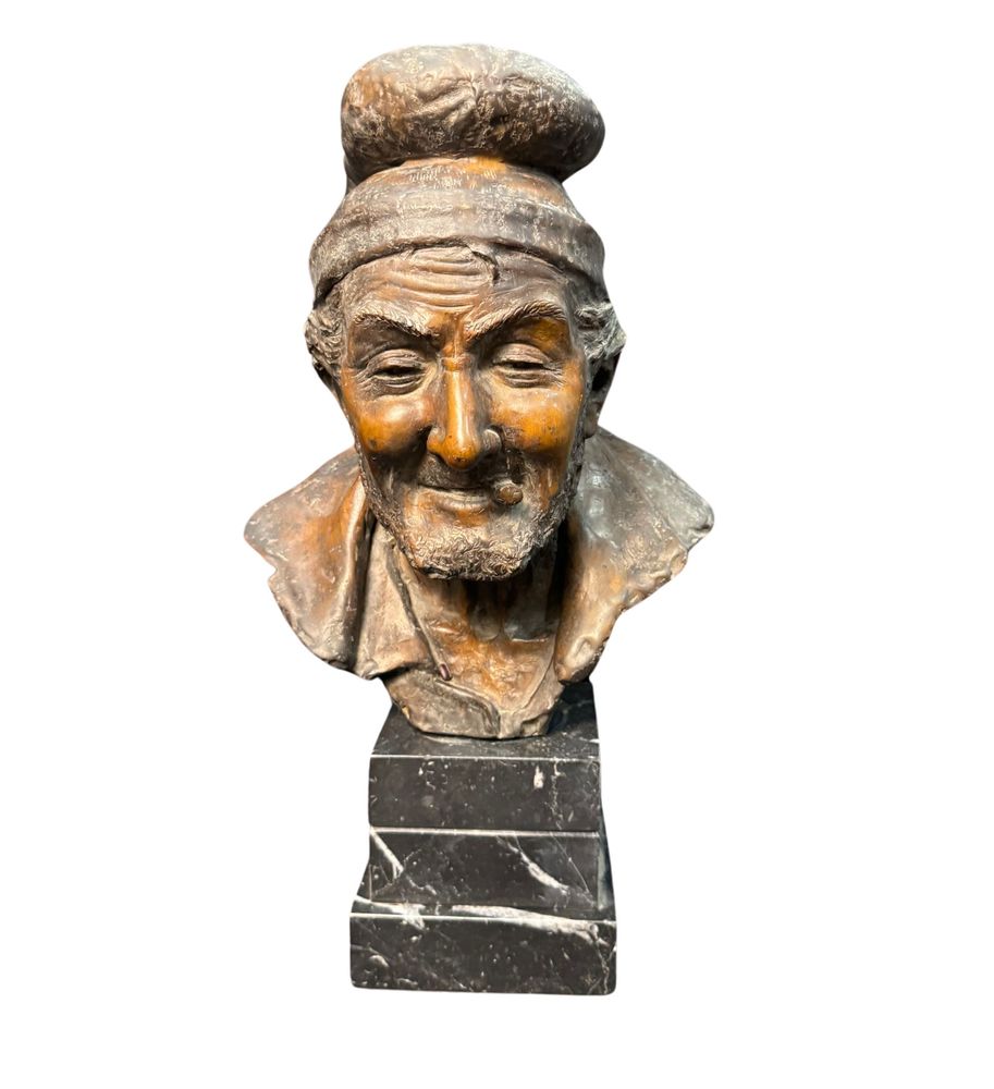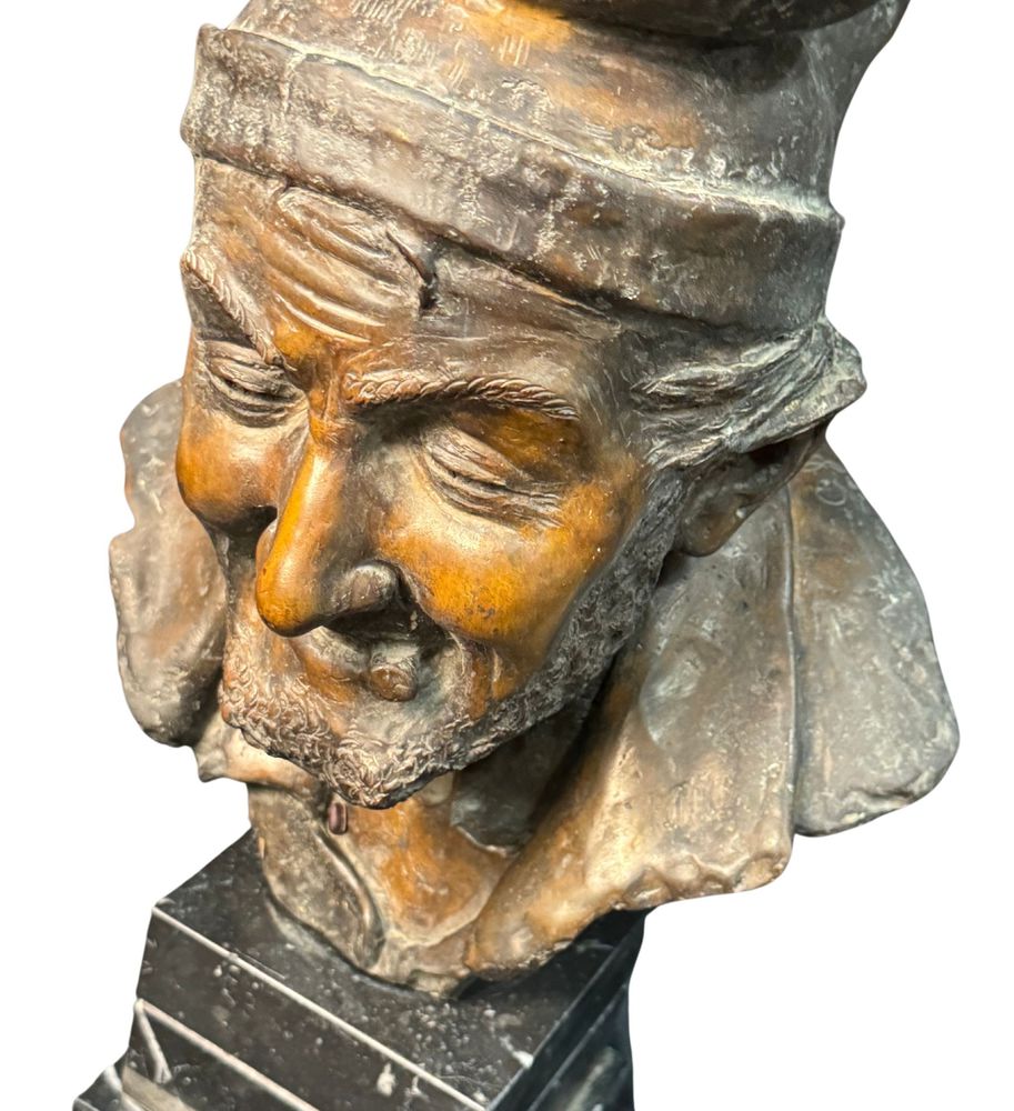 Scultura in bronzo patinato a cera persa, periodo XX secolo, raffigurante Busto di anziano. Reca firma Fariello. Dimensioni: 48x24x29 cm. Opera in buone condizioni e di ottima qualità artistica.