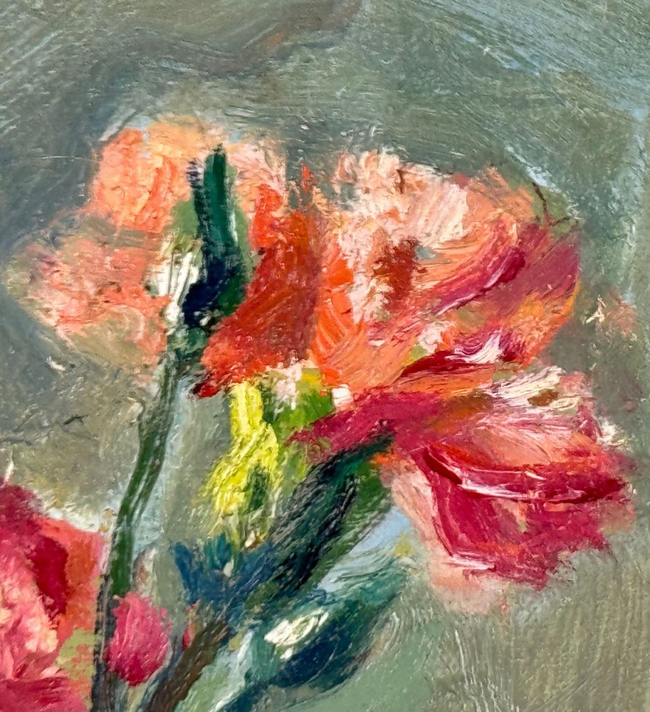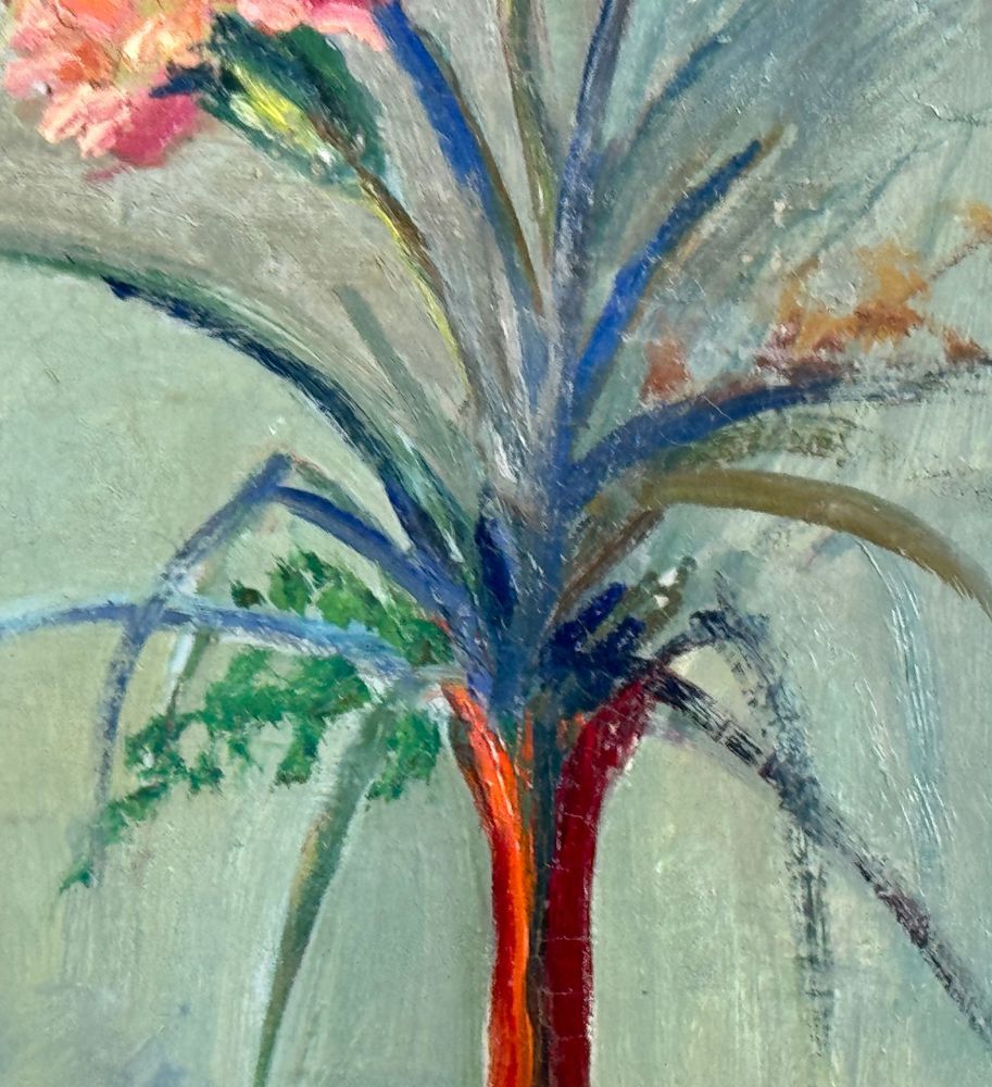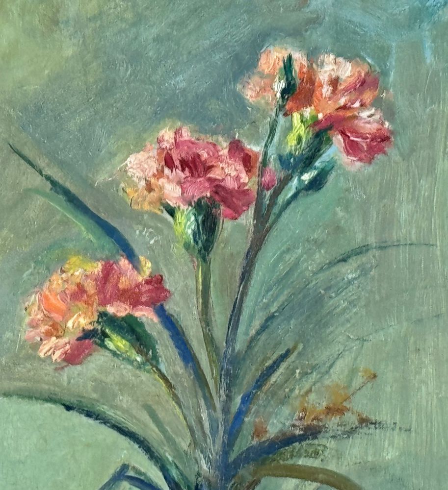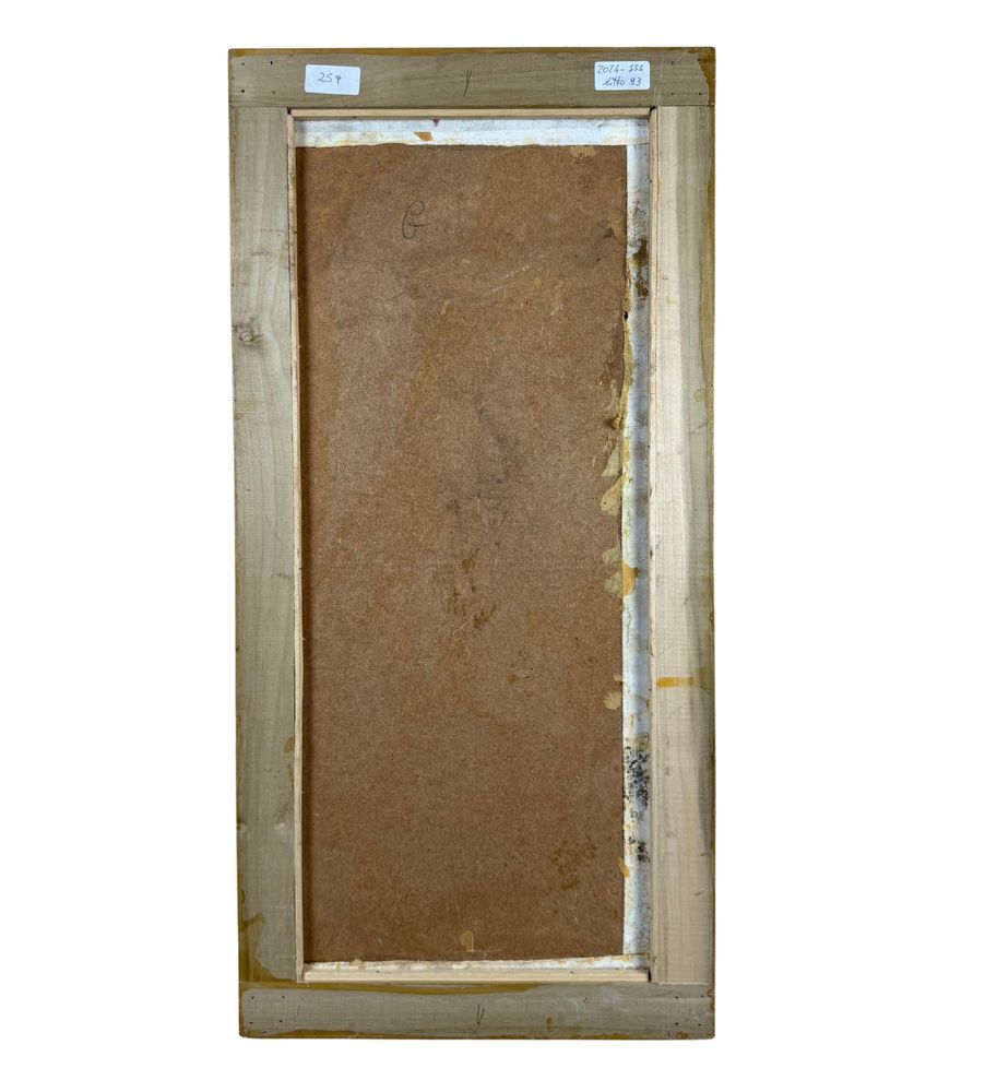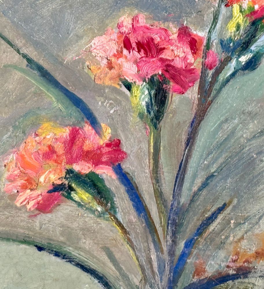 Dipinto olio su tela applicata su pannello, periodo XX secolo scuola Italiana, raffigurante Vaso con fiori. Dimensioni compreso cornice: 33x69 cm. Dimensioni interno cornice: 24x59,5 cm. Reca firma in basso a destra da Angela Carugati (1881 - 1977). Opera in buone condizioni.