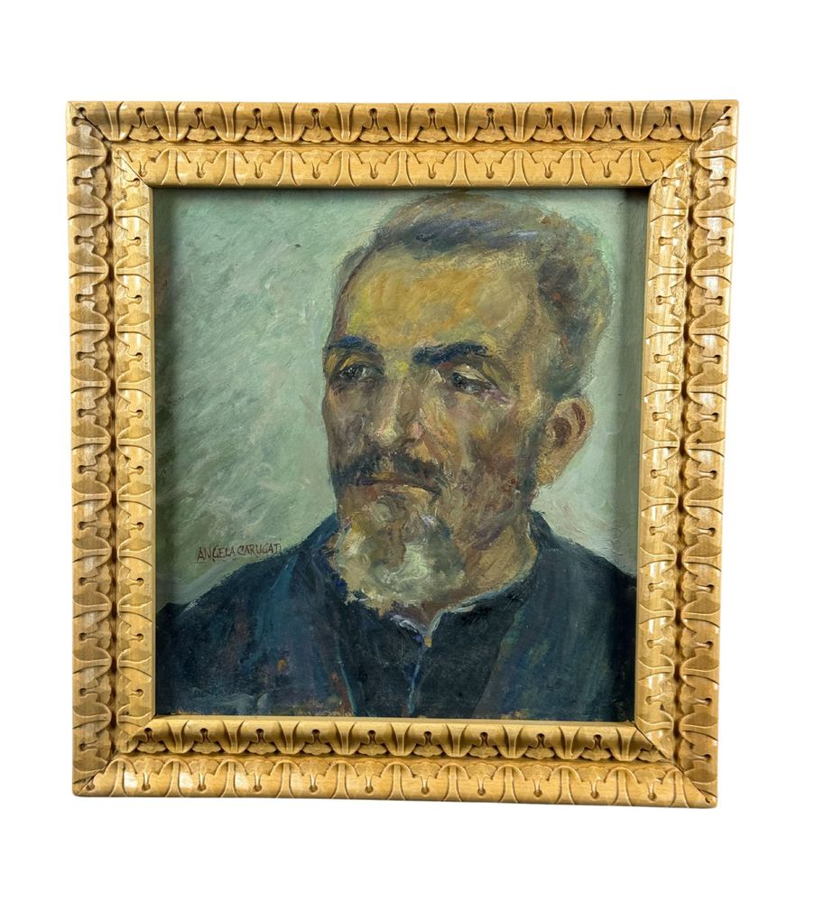 Dipinto olio su pannello, periodo XX secolo scuola italiana, raffigurante Ritratto di uomo. Dimensioni compreso cornice: 40x37,5 cm. Dimensioni interno cornice: 29x32cm. Reca firma su lato a sinistra da Angela Carugati (1881 - 1977). Opera in buone condizioni.
