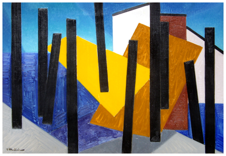 OSVALDO MEDICI DEL VASCELLO Torino 1902 – Firenze 1978 Senza titolo (Case al sole – Maisons au soleil – Paysage – Paese) 1964 Olio su tela 65 x 91,7. Firma in b. a s.; sul verso titoli, data e dedica.