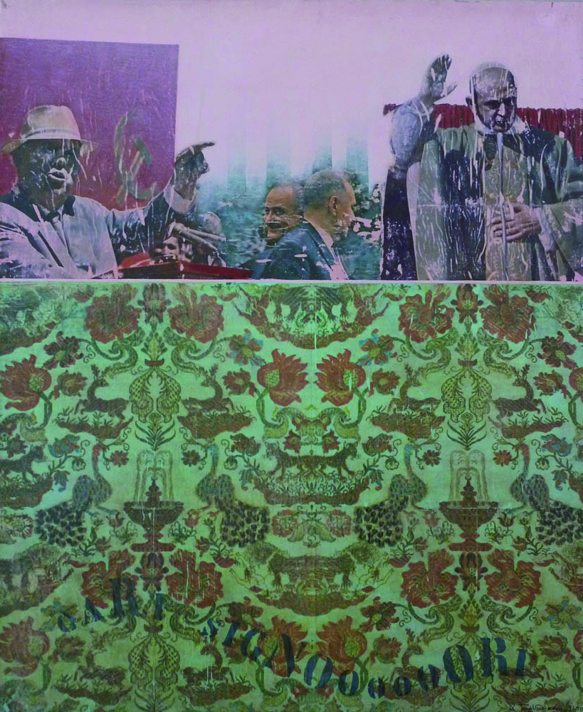 Firmato. ALDO TAGLIAFERRO (1936 – 2009) - " Cari signoooooori ", 1969, Tecnica mista e vinavil su tela, cm. 116 x 93,5. Firmato e datato in basso a destra. Prov. Collezione Privata
