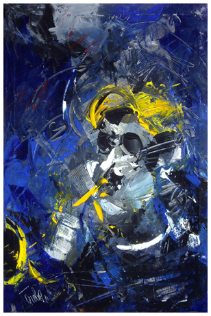 FRANCESCO TORALDO Catanzaro 1960 Fresu band 2009 Olio su tela 50 x 35. Firma in b. a s.; sul verso firma e titolo + etichetta studio dell’artista.