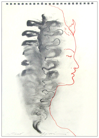 OMAR GALLIANI Montecchio Emilia 1954 Notturno T.m. su carta 29,5 x 21. Firma in b. al c., titolo in b. a s. Autentica dell’autore su foto.
