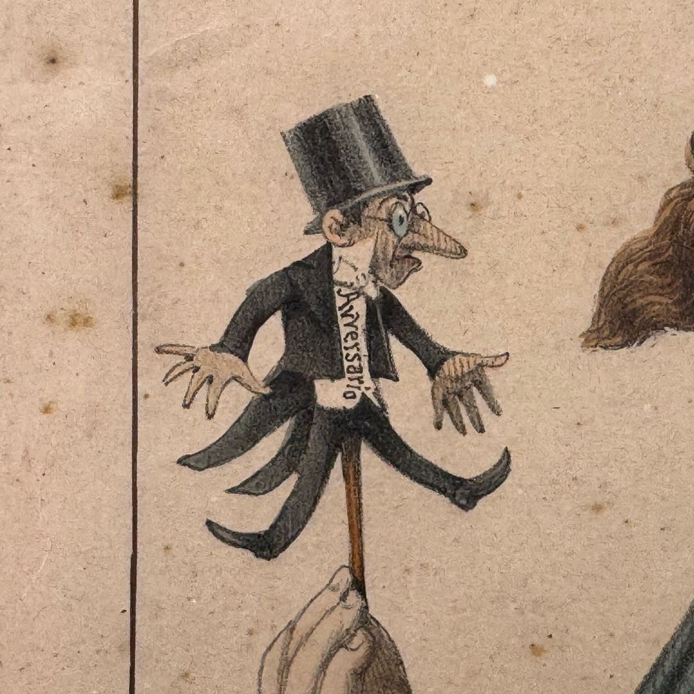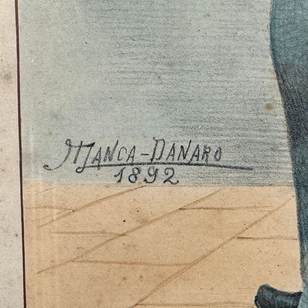 Litografia originale estratta dalla seconda edizione de "L’album dei 500" Tipografia Campajoli, Napoli, 1876; Tavola firmata in basso a sinistra: Manganaro, 1892. La tavola raffigura: FLAUTI, Vincenzo, matematico prof. Emerito dell’Università di Napoli. Dimensioni, interno cornice: 32x49 cm. Dimensioni compreso cornice: 36x53 cm. Conservazione eccellente. Manganaro Antonio (Manfredonia, 1842 – Napoli, 1920). Pittore e caricaturista, professore di disegno. Fu considerato alla pari dei due altri maggiori caricaturisti della sua epoca, vale a dire Errico Colonna e Melchiorre Delfico. Nel 1885 ottenne la cattedra di disegno presso la Scuola tecnica Giambattista Della Porta a Napoli. Ha lasciato molti album originali di caricature, tra cui I Cinquecento del I Parlamento italiano, Ottanta consiglieri municipali del Palazzo San Giacomo, Consiglieri provinciali di Napoli, Contemporanei, ecc..