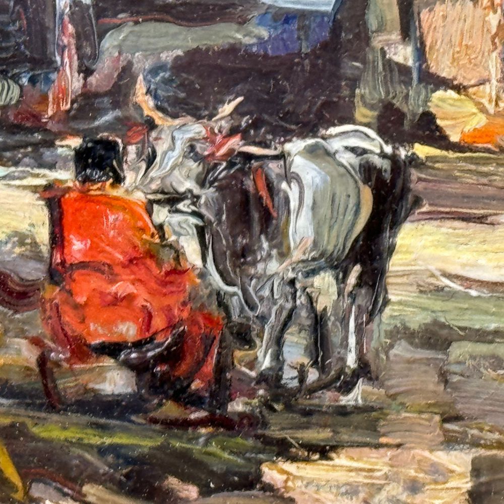 Dipinto olio su tavola, periodo XX secolo scuola Italiana, raffigurante Fattoria.