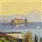 Dipinto tempera su carta, periodo XX secolo scuola Italiana, raffigurante Veduta di Napoli da Santa Lucia.
