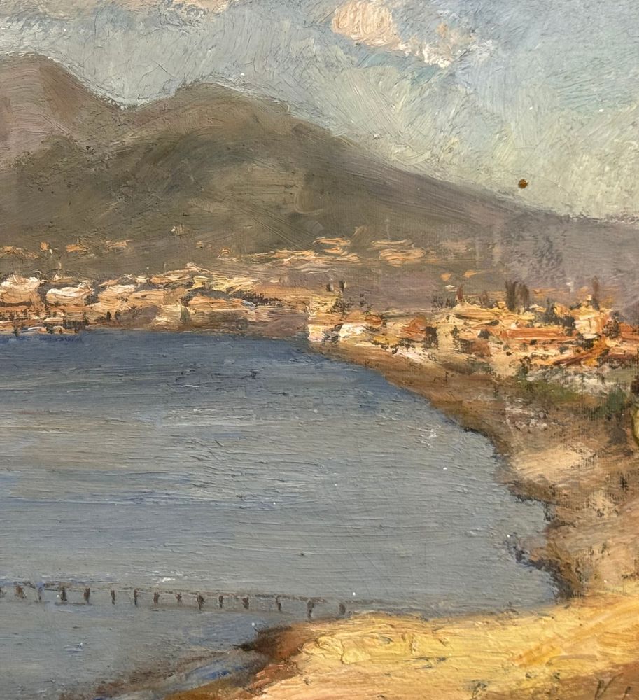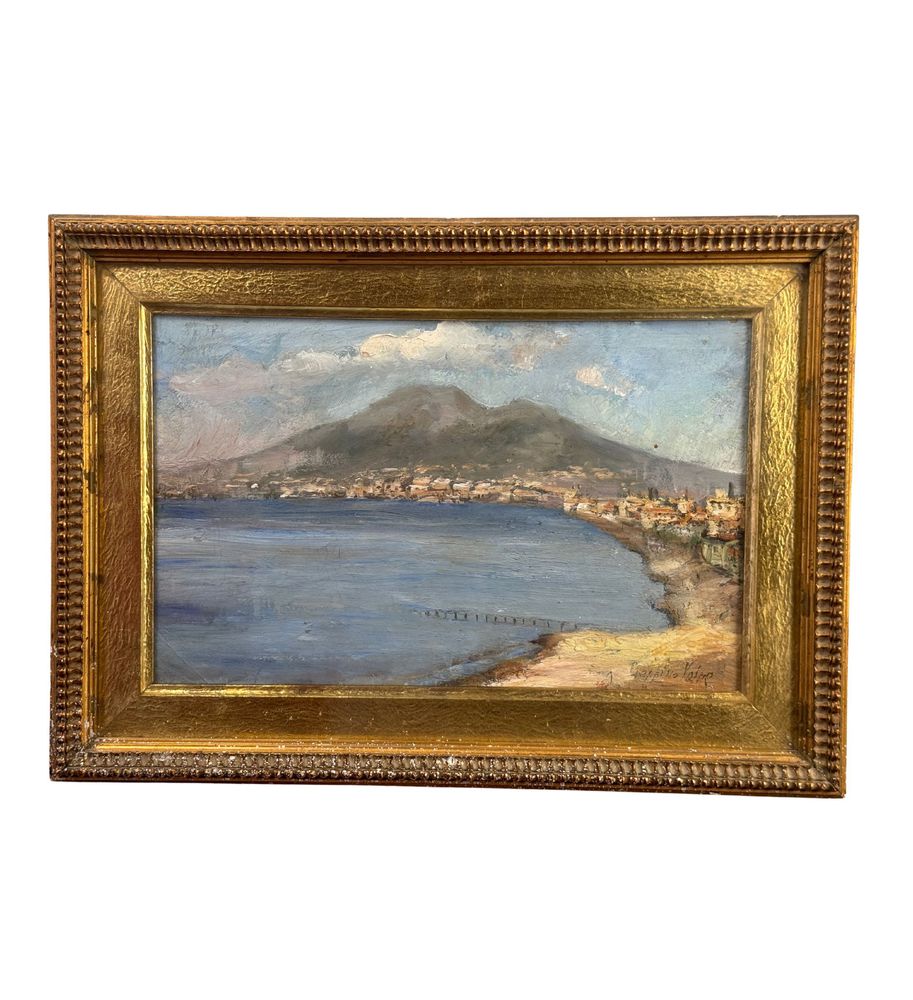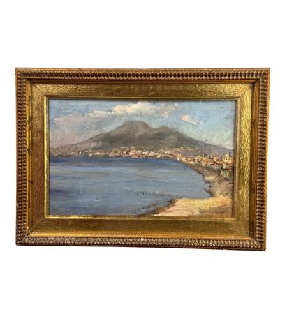 Dipinto olio su tavola, periodo primi anni del XX secolo, scuola Italiana, raffigurante Veduta del Golfo. Dimensioni compreso cornice: 48x34 cm. Dimensioni interno cornice: 36x23 cm. Reca firma in basso a destra da Volpe. Opera in buone condizioni.