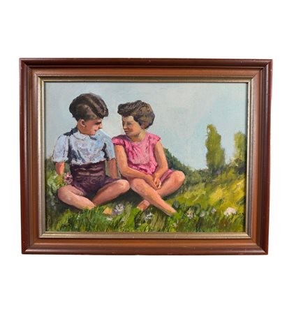 Dipinto olio su pannello, periodo XX secolo scuola Italiana, raffigurante Bambini. Dimensioni compreso cornice: 50x40 cm. Dimensioni interno cornice: 42x32 cm. Reca firma in basso a destra da artista non identificato. Opera in buone condizioni.