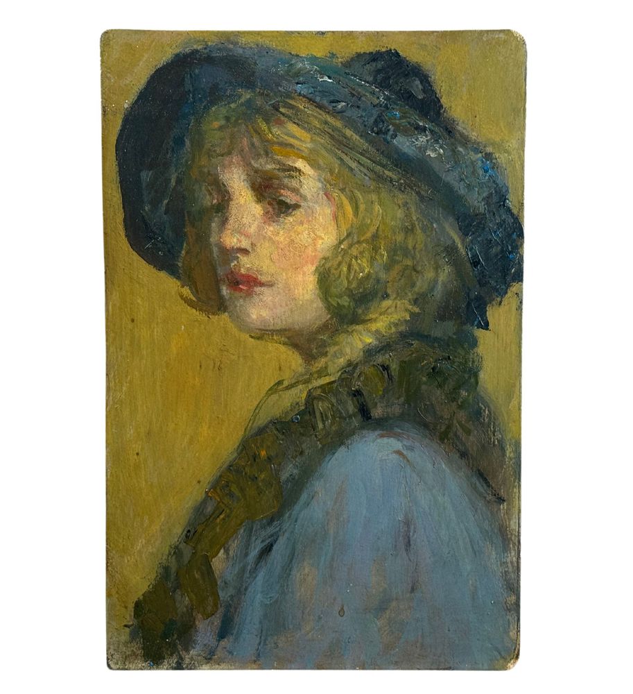 Dipinto olio su tavola, periodo prima metà del XX secolo scuola Italiana, raffigurante Ritratto di donna con cappello. Dimensioni: 20x30 cm. Da artista anonimo. Opera in buone condizioni con lievi segni di vissuto come da foto allegate.