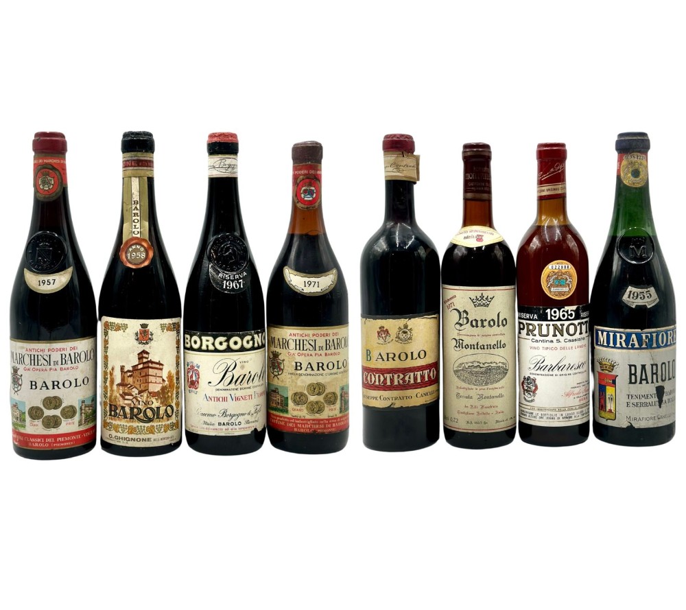 Italia-Piemonte 0,75 Piemonte, Barolo DOC - 4 bottiglie (bt), annate 1955, 1965, 1957, 1958, 1967 e 1971.