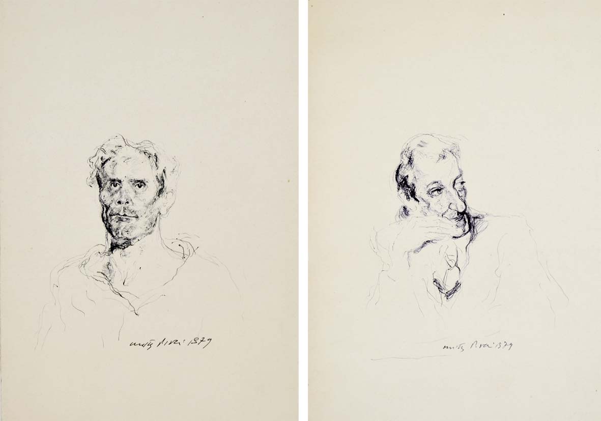 PIACESI WALTER Ascoli Piceno 1929 Ritratti 1979 lotto di 2 chine su cartoncino 29x20 cad. entrambi firmati e datati in basso