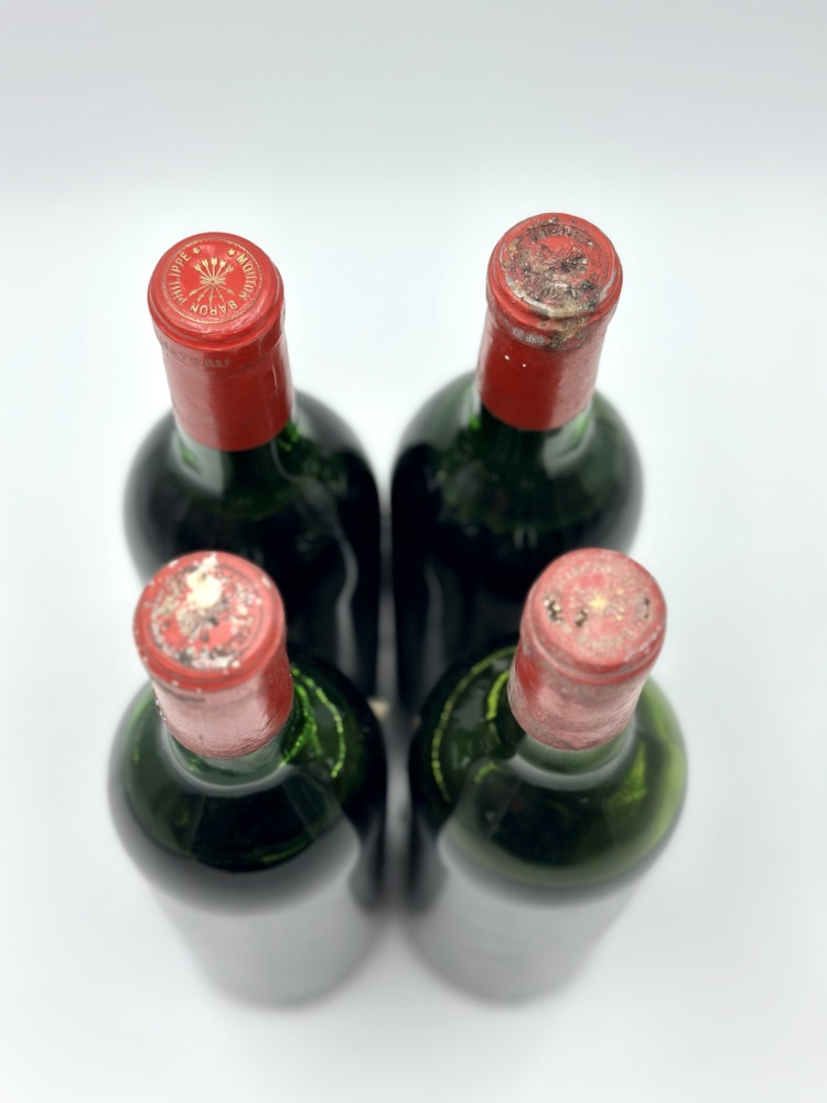 Francia-Pauillac 0,75 Francia, Château Mouton Baron Philippe - 4 bottiglie (bt), annate 1971 e 1976.
