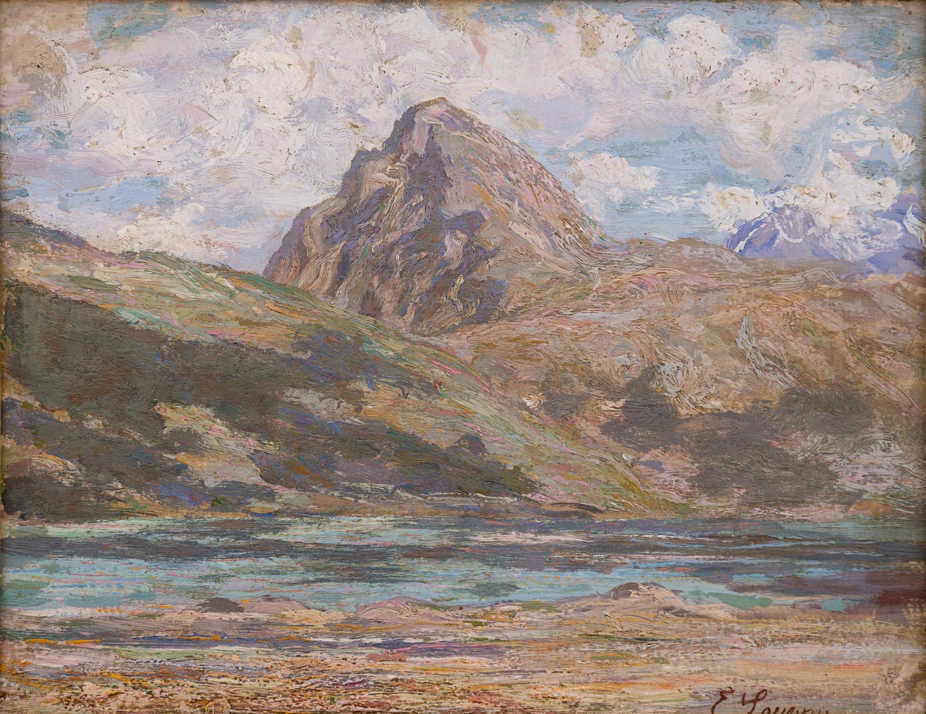Emilio longoni - Lago Alpino nubi sul Bernina