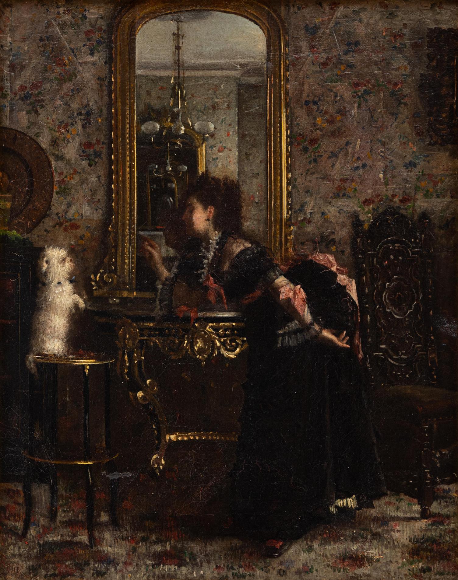 Theodoros Ralli - Il barboncino - 1852 - 1909 - Olio su tela cm 30x25,5