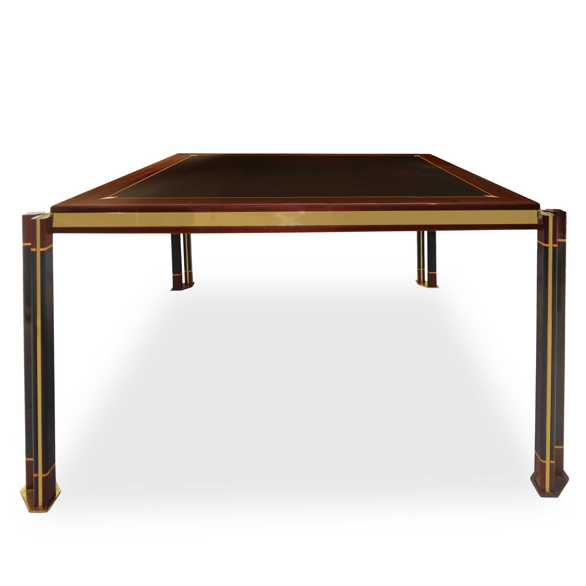 Paolo Barracchia per Roman Decò - Tavolo quadrato e 8 sedie in ottone rivestito in legno laccato e intarsiato, 1970-1979 h cm 79X154,5,