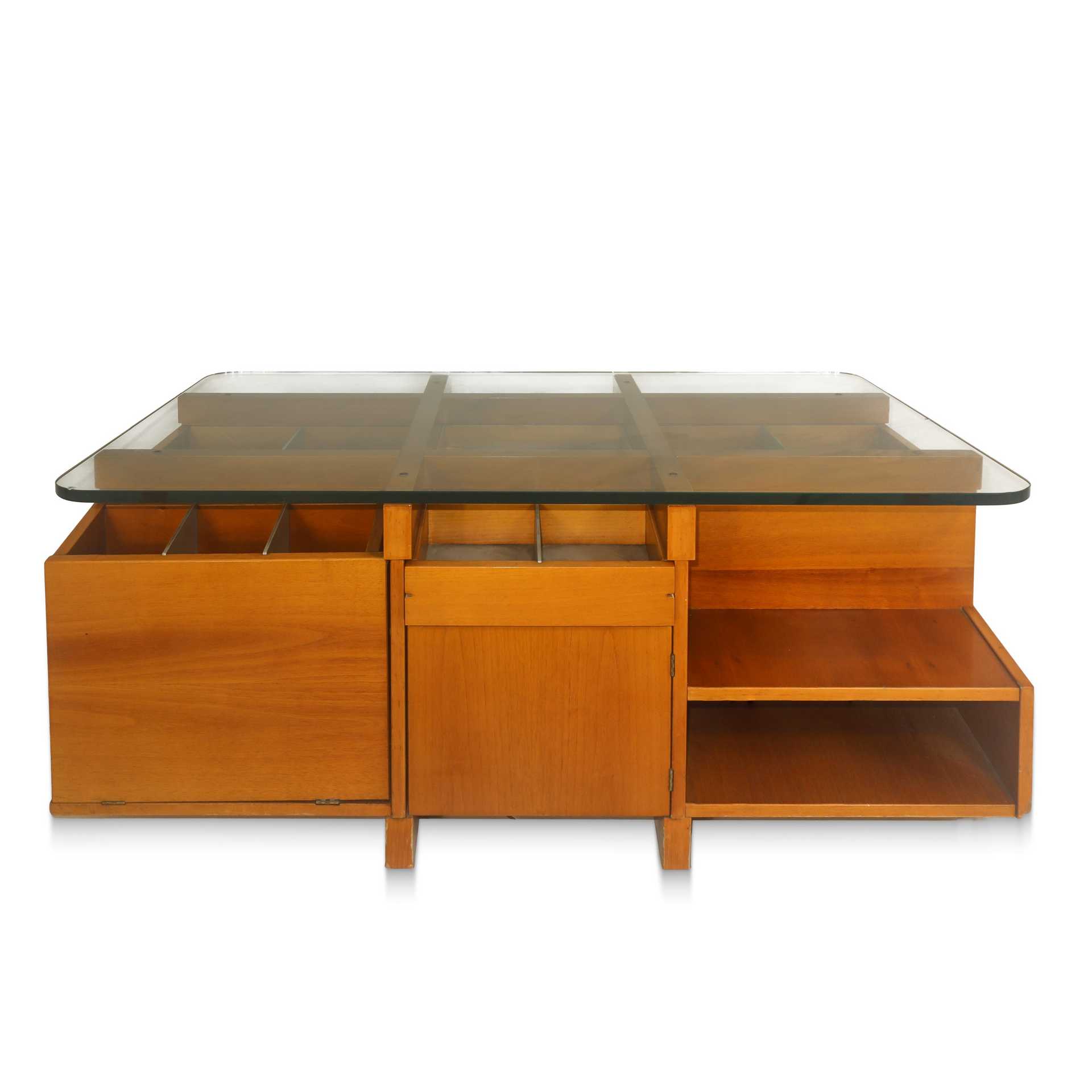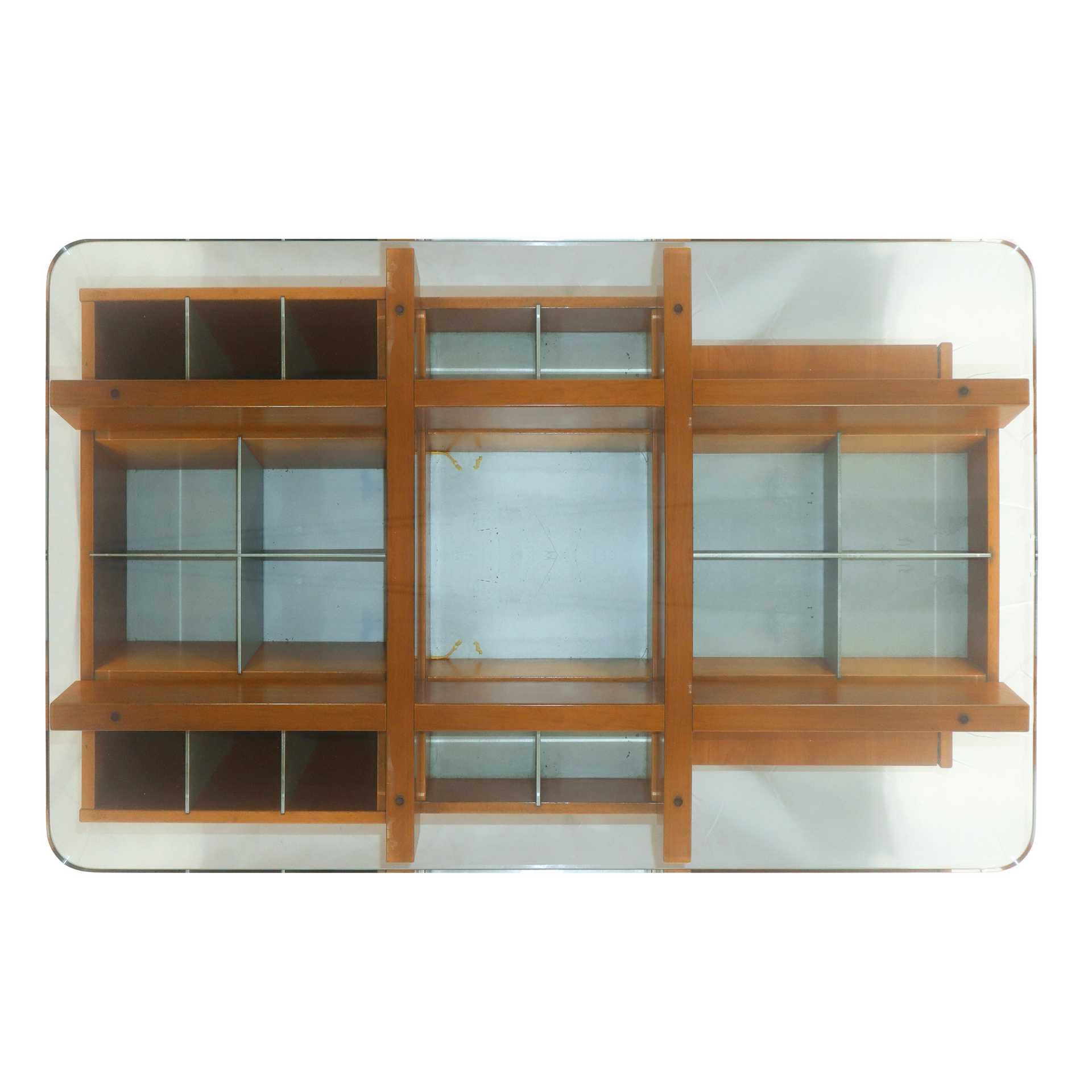 Tavolino basso vintage da salotto in legno e vetro, Produzione italiana Produzione italiana h cm 46X66X108
