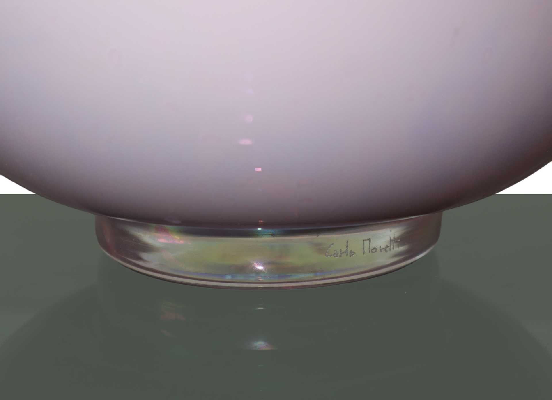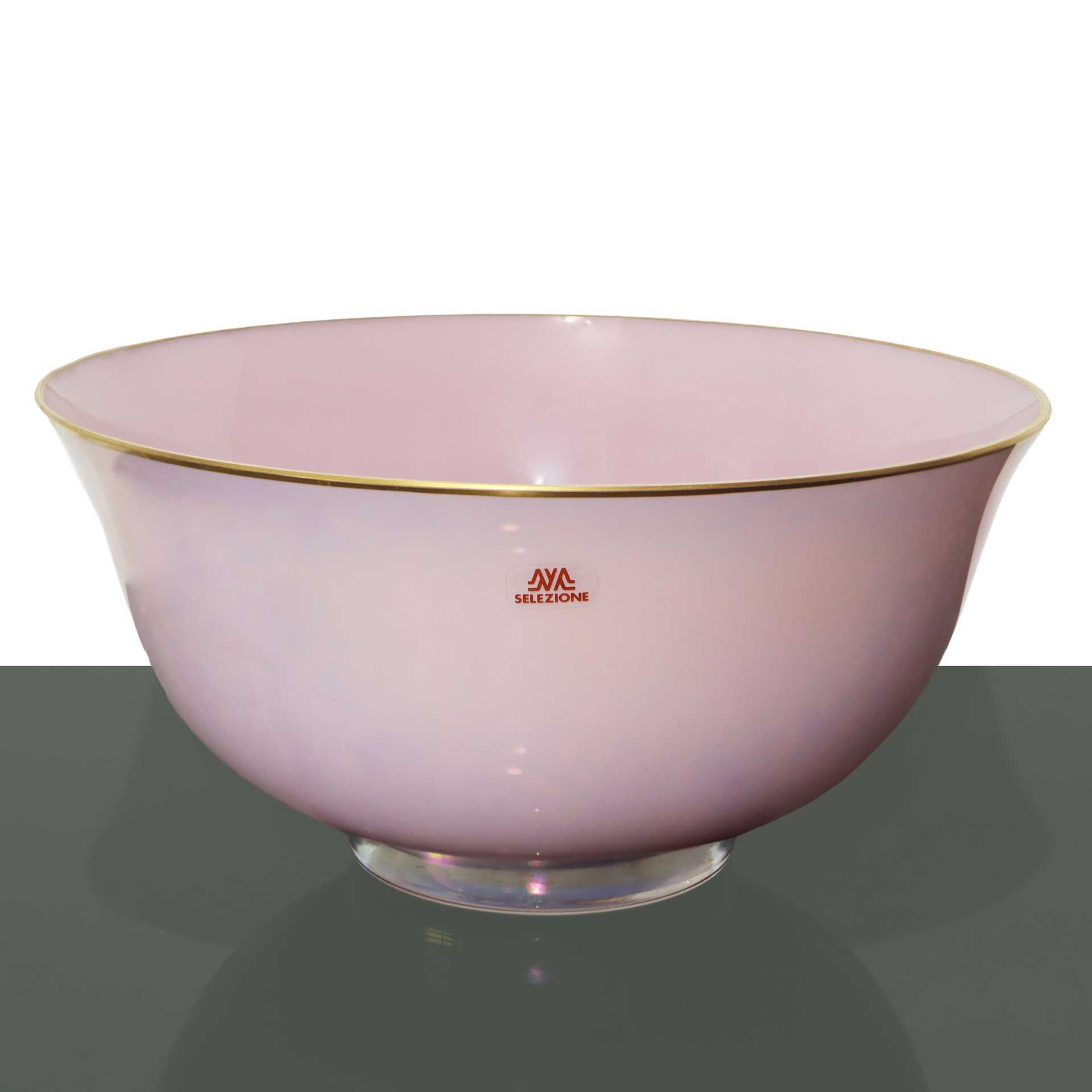 Carlo Moretti (1958) - Ciotola in vetro di Murano opalescente rosa e bordo dorato,
