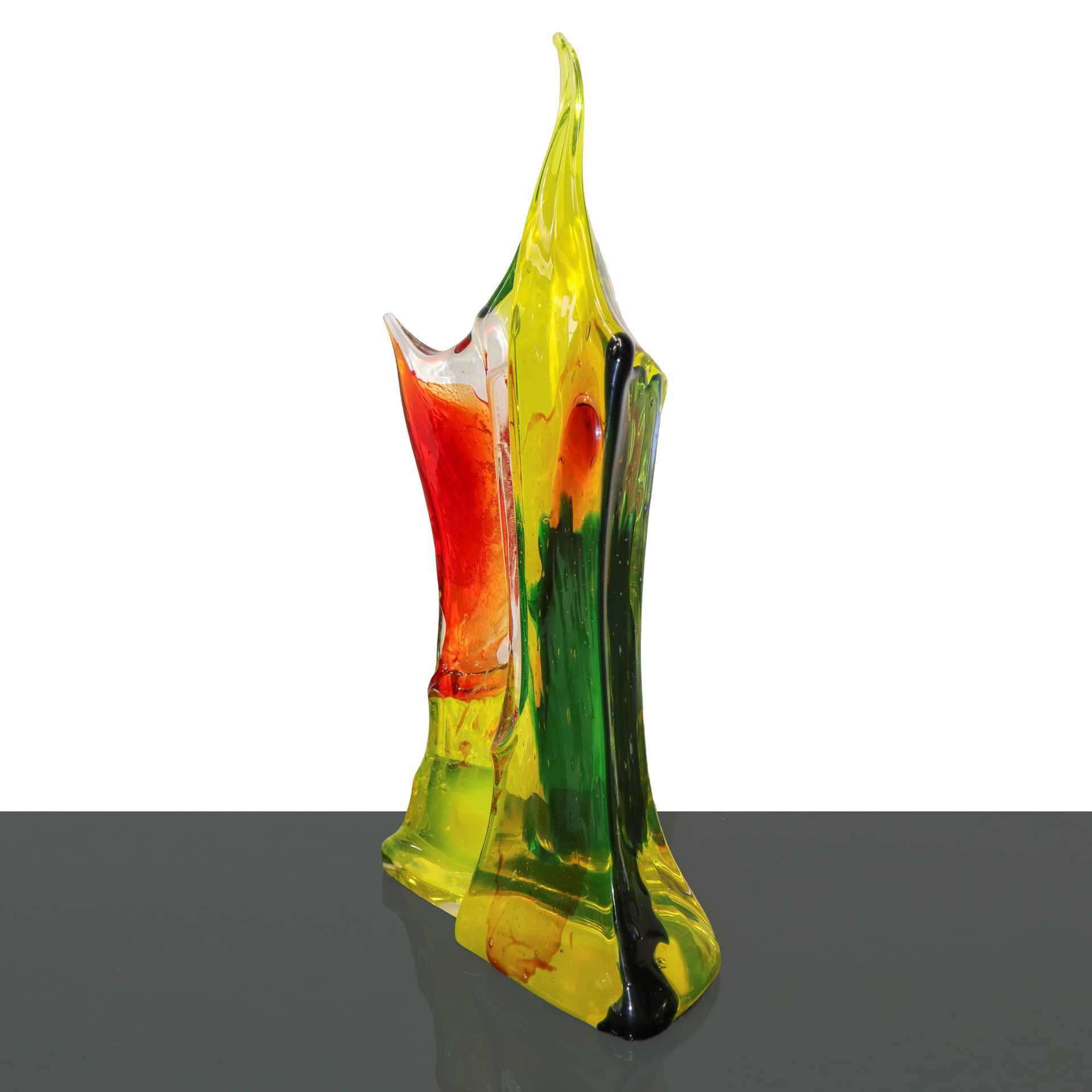 Pino Signoretto (Venezia 1944-2017) - Scultura in vetro di Murano dalla forma astratta nei colori giallo, verde, rosso