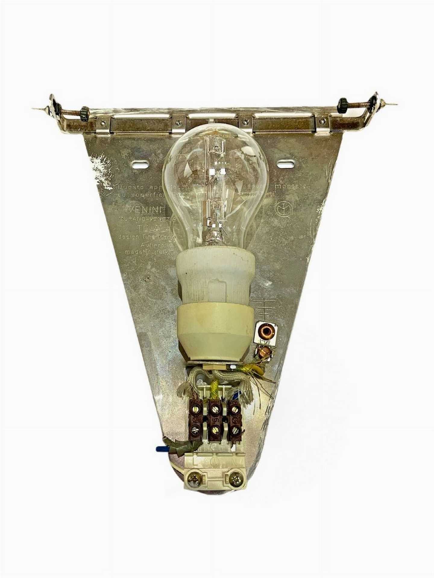 Venini - Lampada da parete in vetro lattimo, disegno Tina Aufiero, 1986 H cm 29 x cm 28 Firma e data incussa Firma e data incussa
