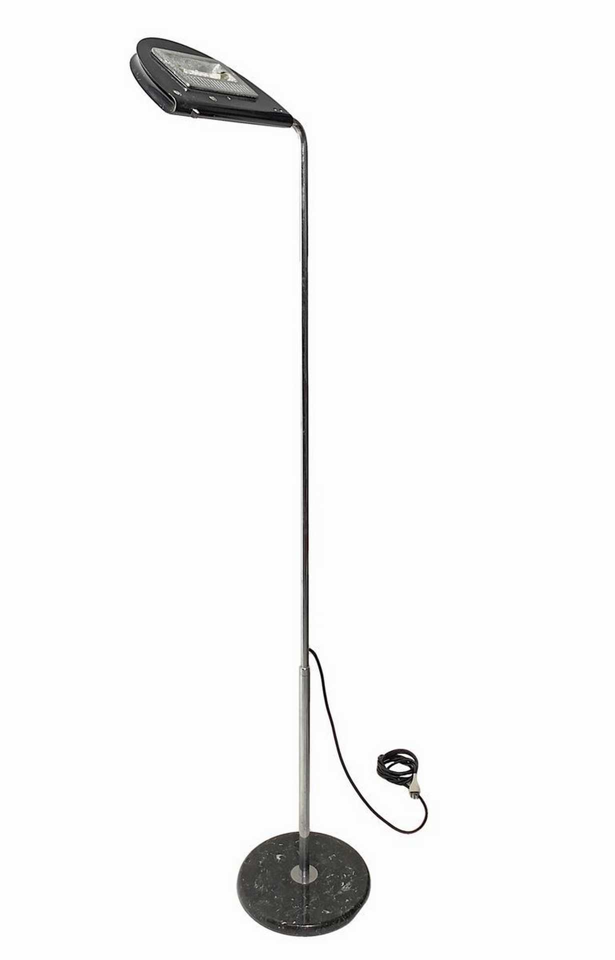 Bruno Gecchelin (1939) - Piantana modello a mezzaluna H cm 179 Produzione Skipper, con struttura tubolare cromata, base in marmo nero marquinia, illuminazione alogena. Produzione Skipper, con struttura tubolare cromata, base in marmo nero marquinia, illuminazione alogena.