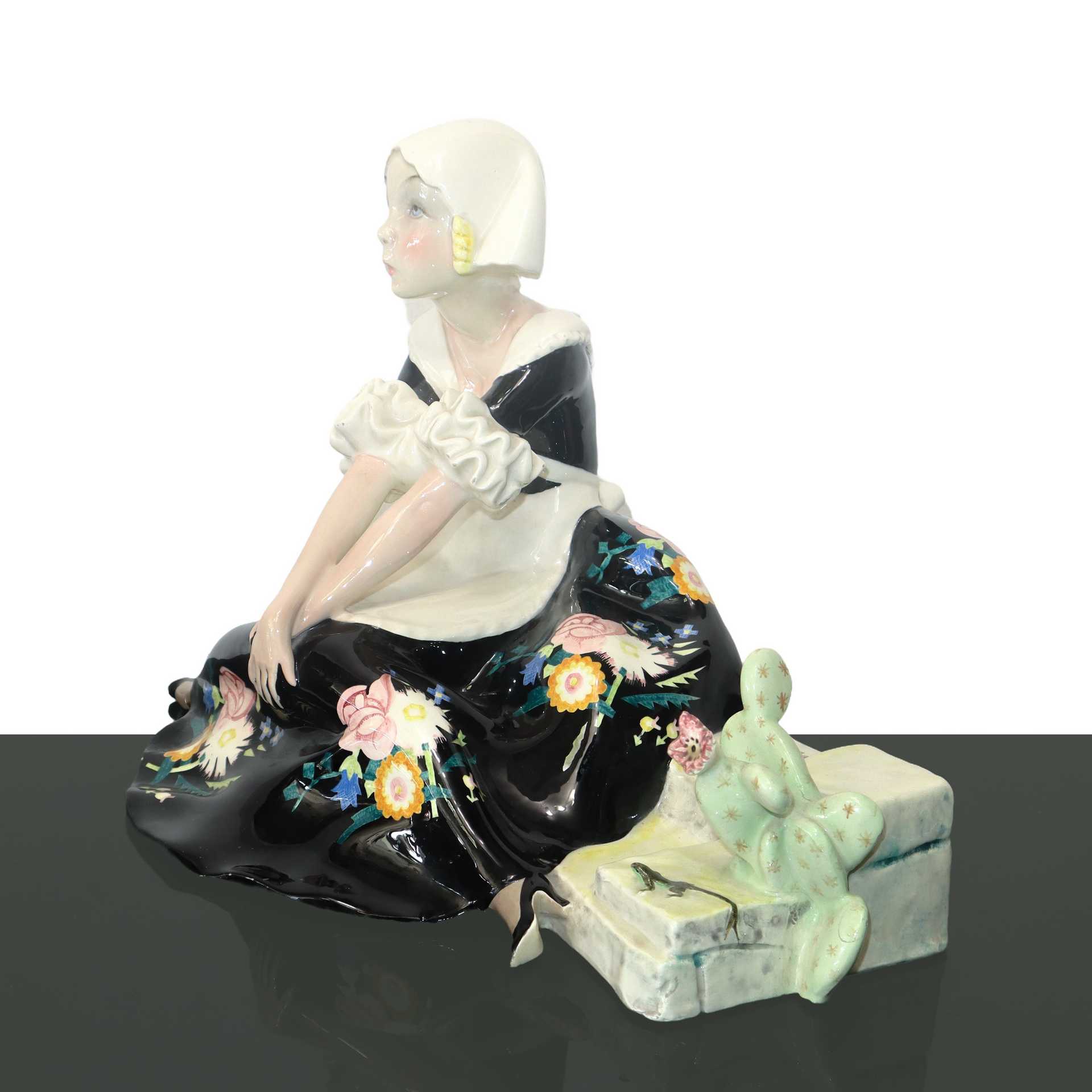 EsseVi Ceramica - Statua di fanciulla in ceramica policroma con cactus e lucertola